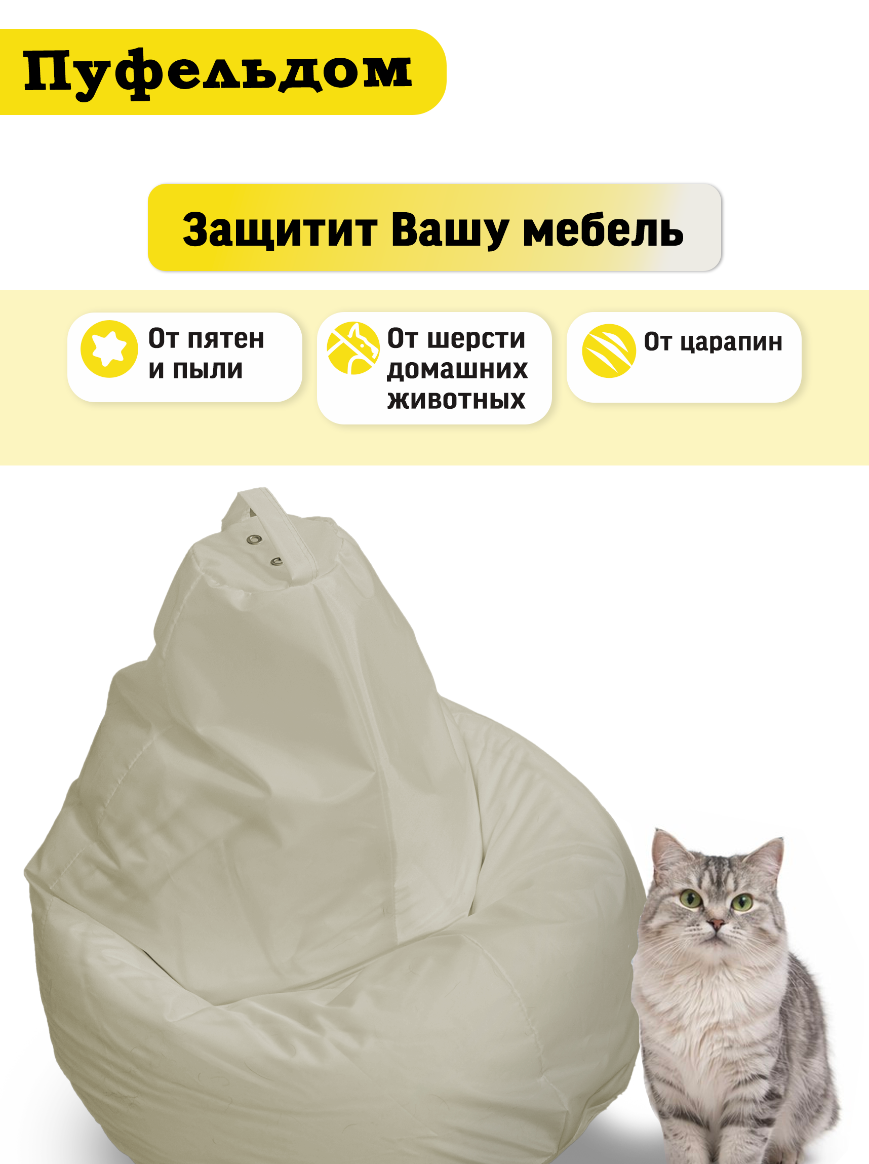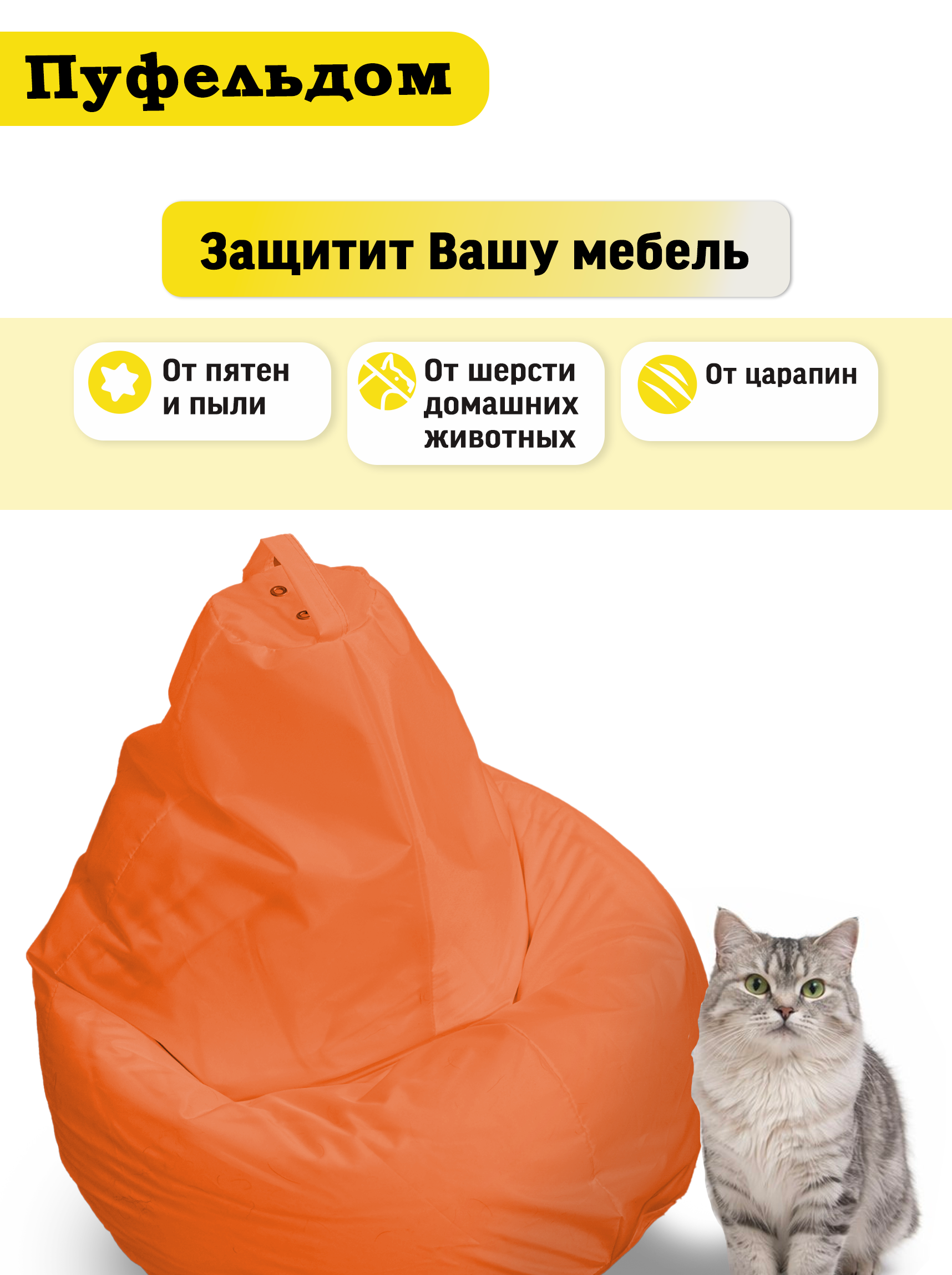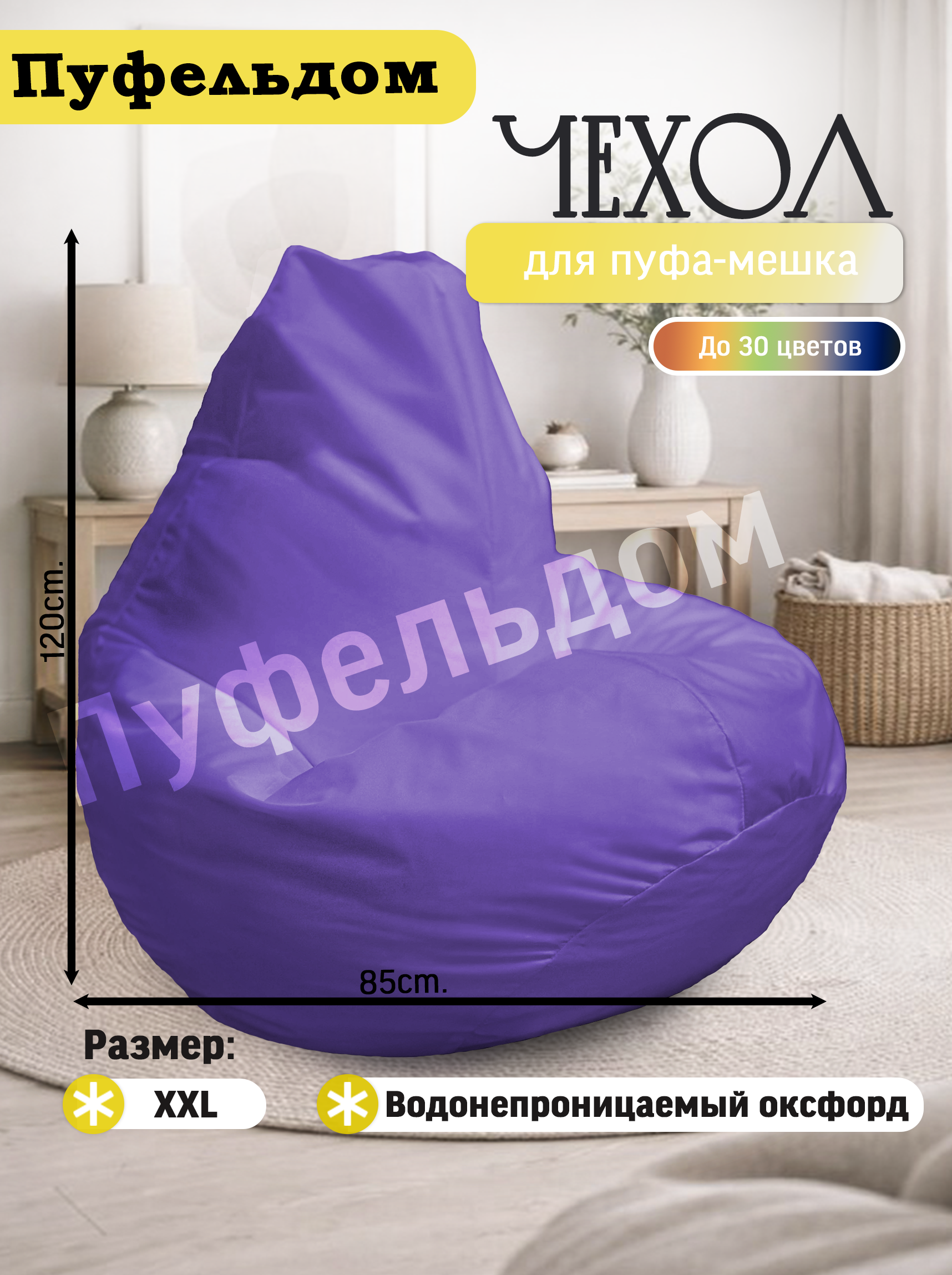 Чехол для кресла-мешка тканевый, изготовлен из водонепроницаемого материала Оксфорд толщиной нити 210 D. Мешок из оксфорда очень прочный, легко стирается и может использоваться на улице. XL - для кресла-мешка размером 110х70 см XXL - для кресла-мешка размером 120х85 см ХХXL - для кресла-мешка размером 130х100 см ХХXL - для кресла-мешка размером 140х120 см Реальный оттенок может отличаться от фото из-за особенностей настроек Вашего экрана.