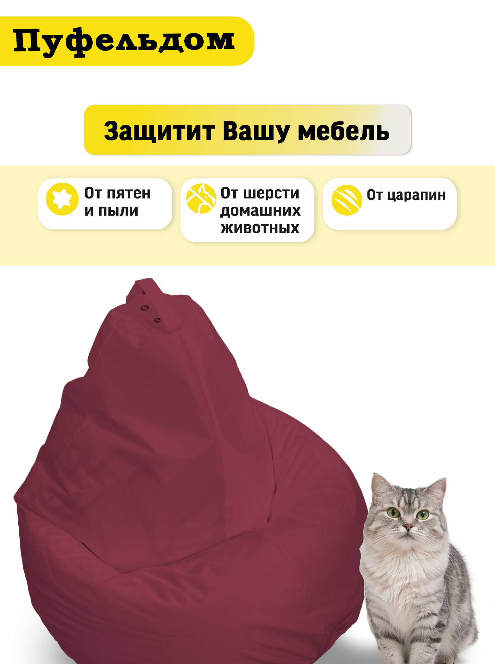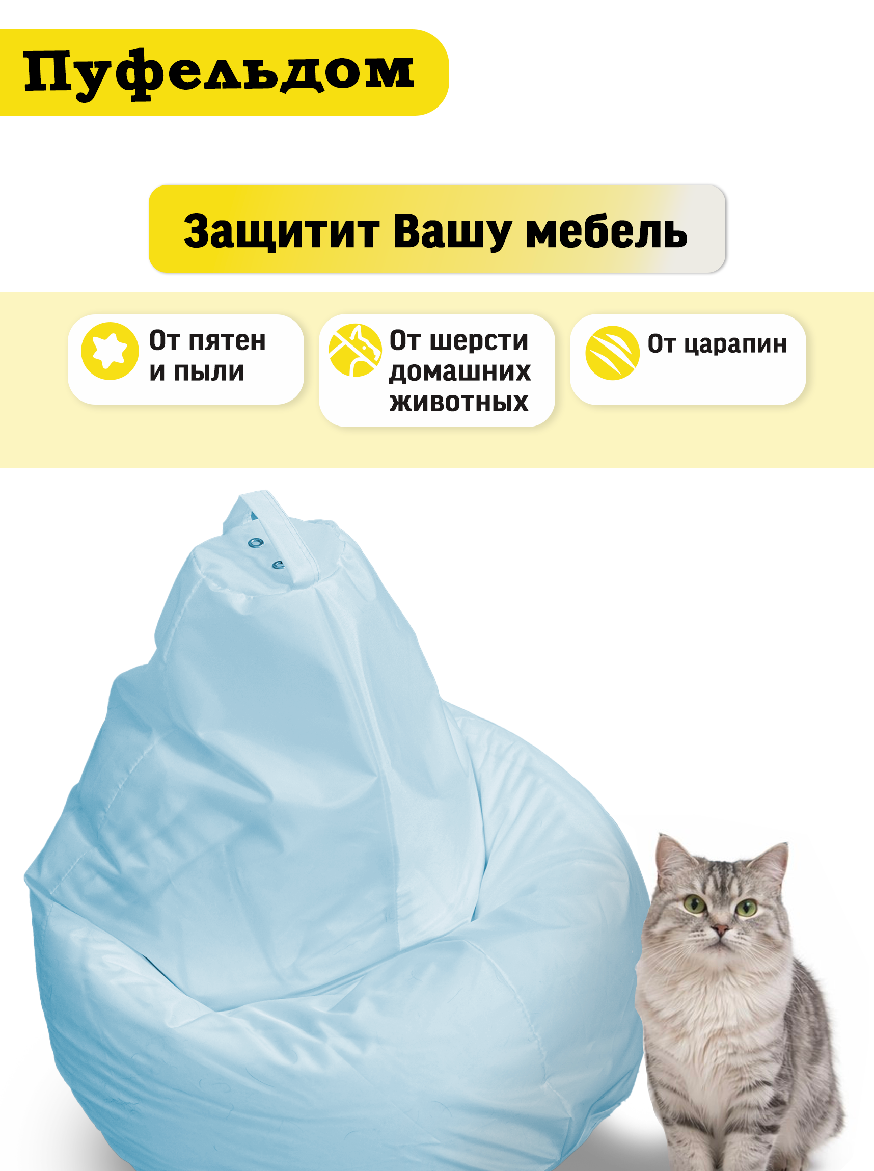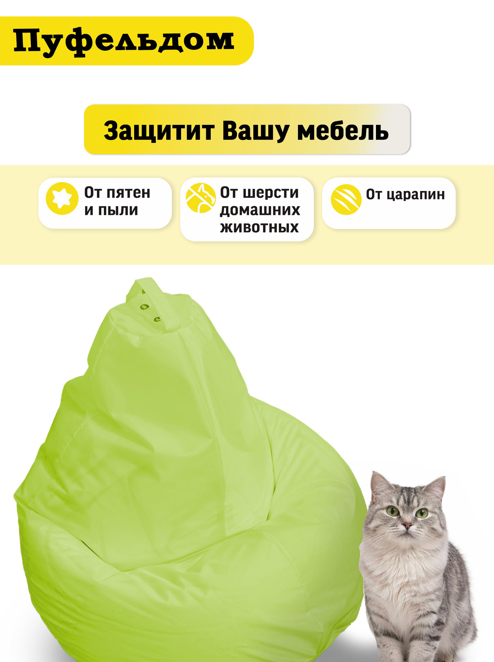 Чехол для кресла-мешка тканевый, изготовлен из водонепроницаемого материала Оксфорд толщиной нити 210 D. Мешок из оксфорда очень прочный, легко стирается и может использоваться на улице. XL - для кресла-мешка размером 110х70 см XXL - для кресла-мешка размером 120х85 см ХХXL - для кресла-мешка размером 130х100 см ХХXL - для кресла-мешка размером 140х120 см Реальный оттенок может отличаться от фото из-за особенностей настроек Вашего экрана.