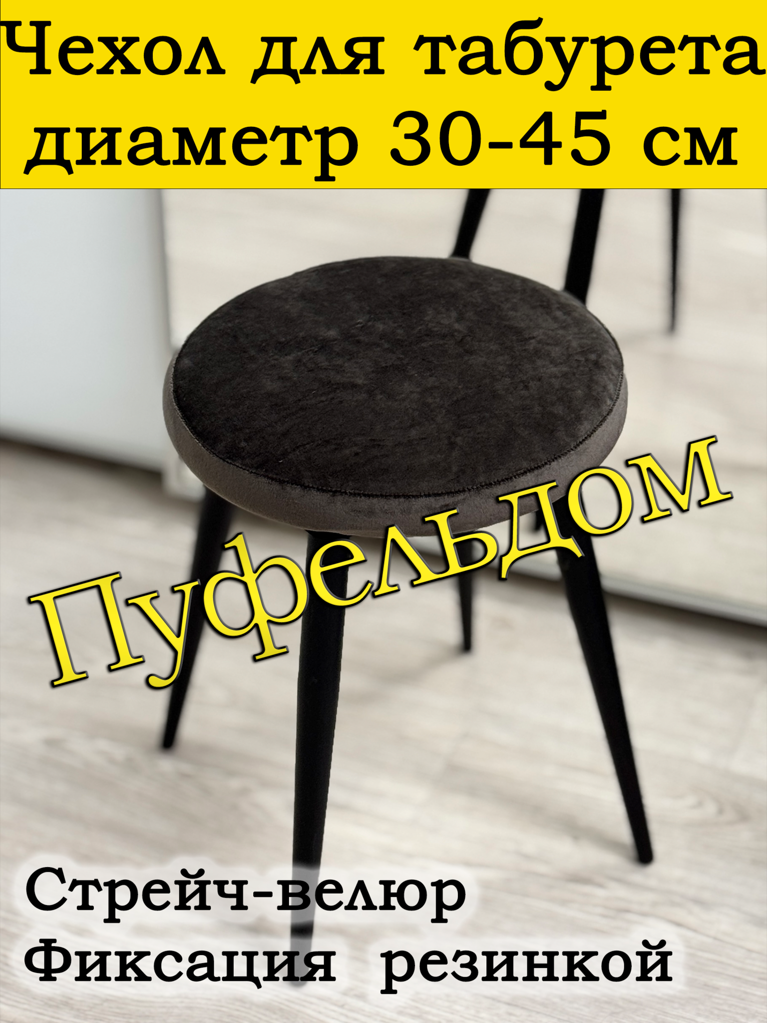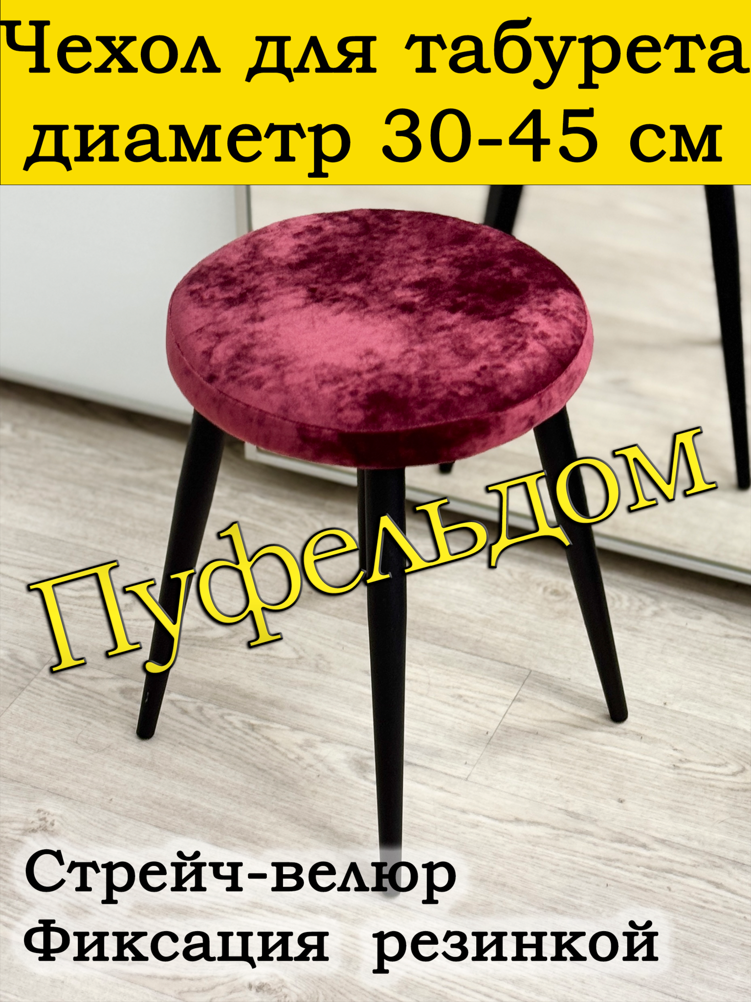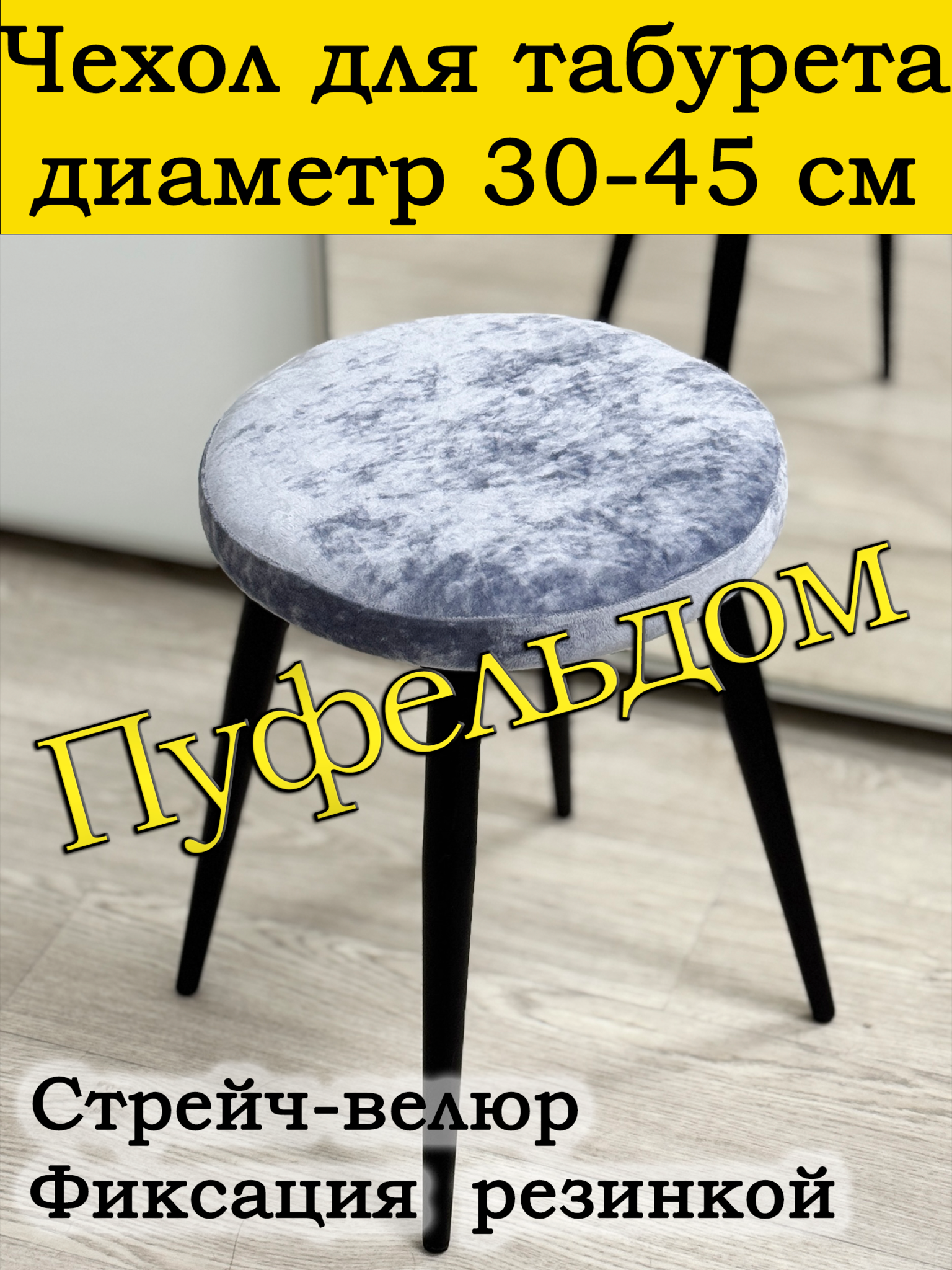 Чехол для круглого табурета, стула мастера. Подойдет для табуретов диаметром 30-45 см. Изготовлен из стрейчевого велюра. Фиксируется резинкой.