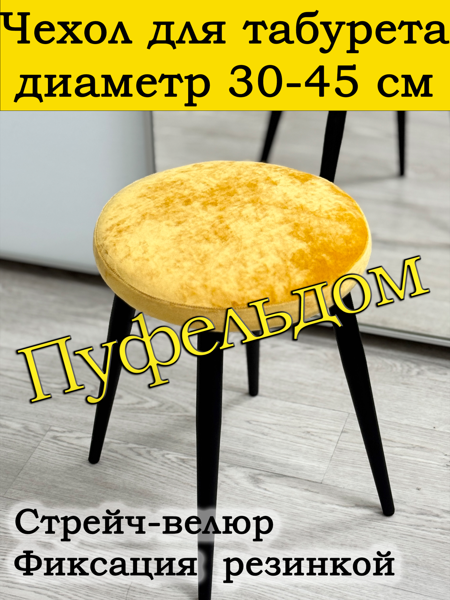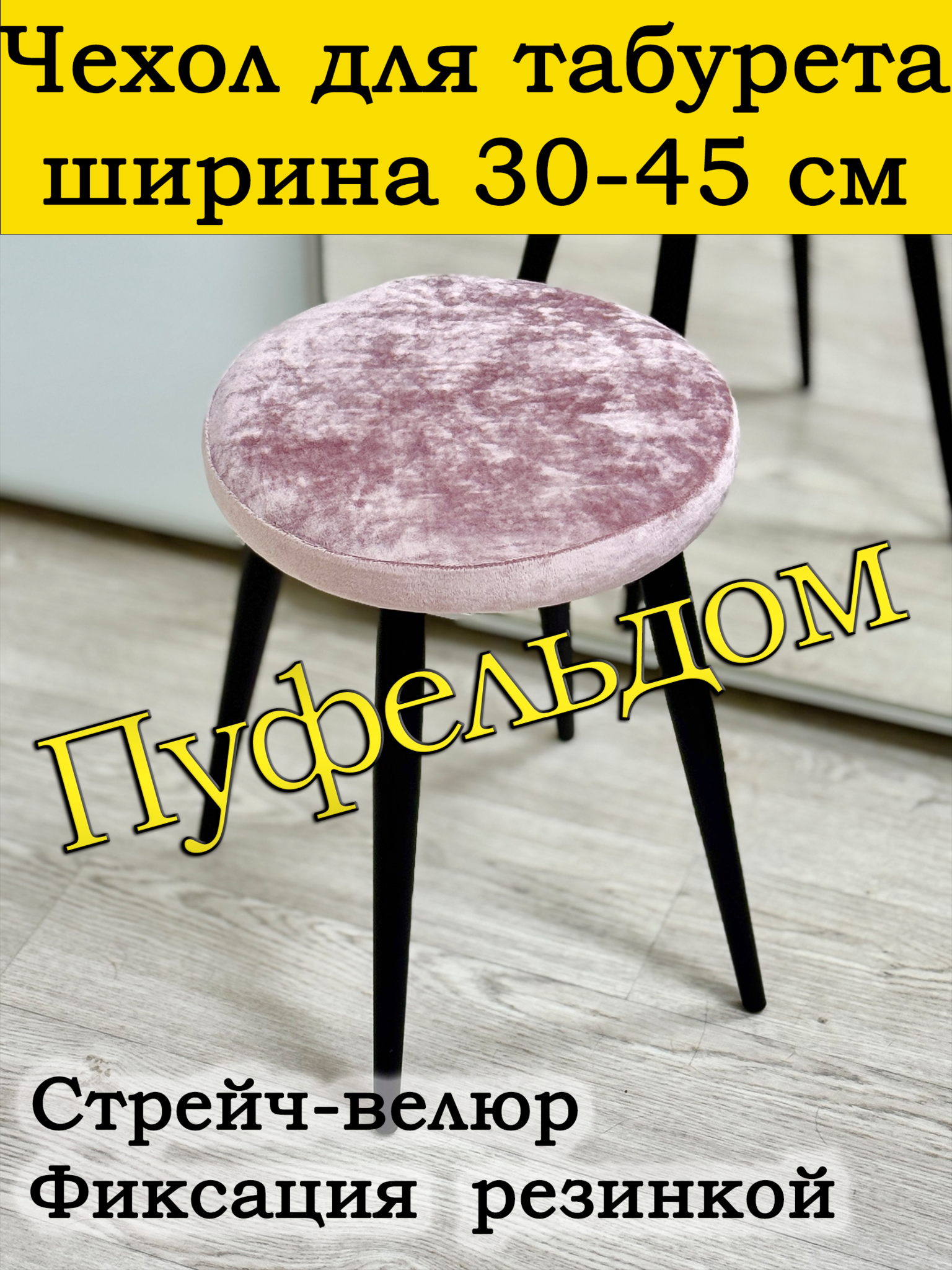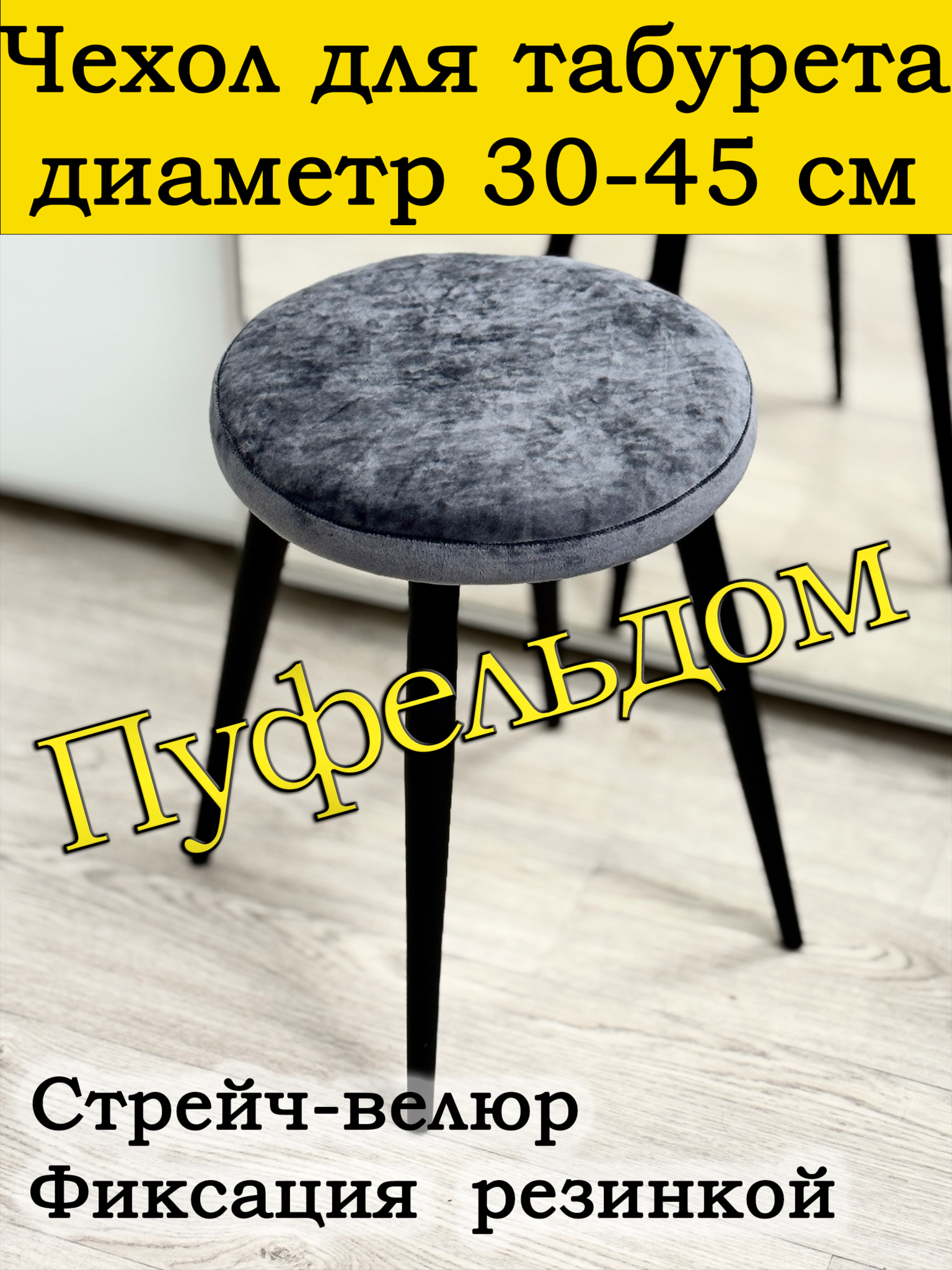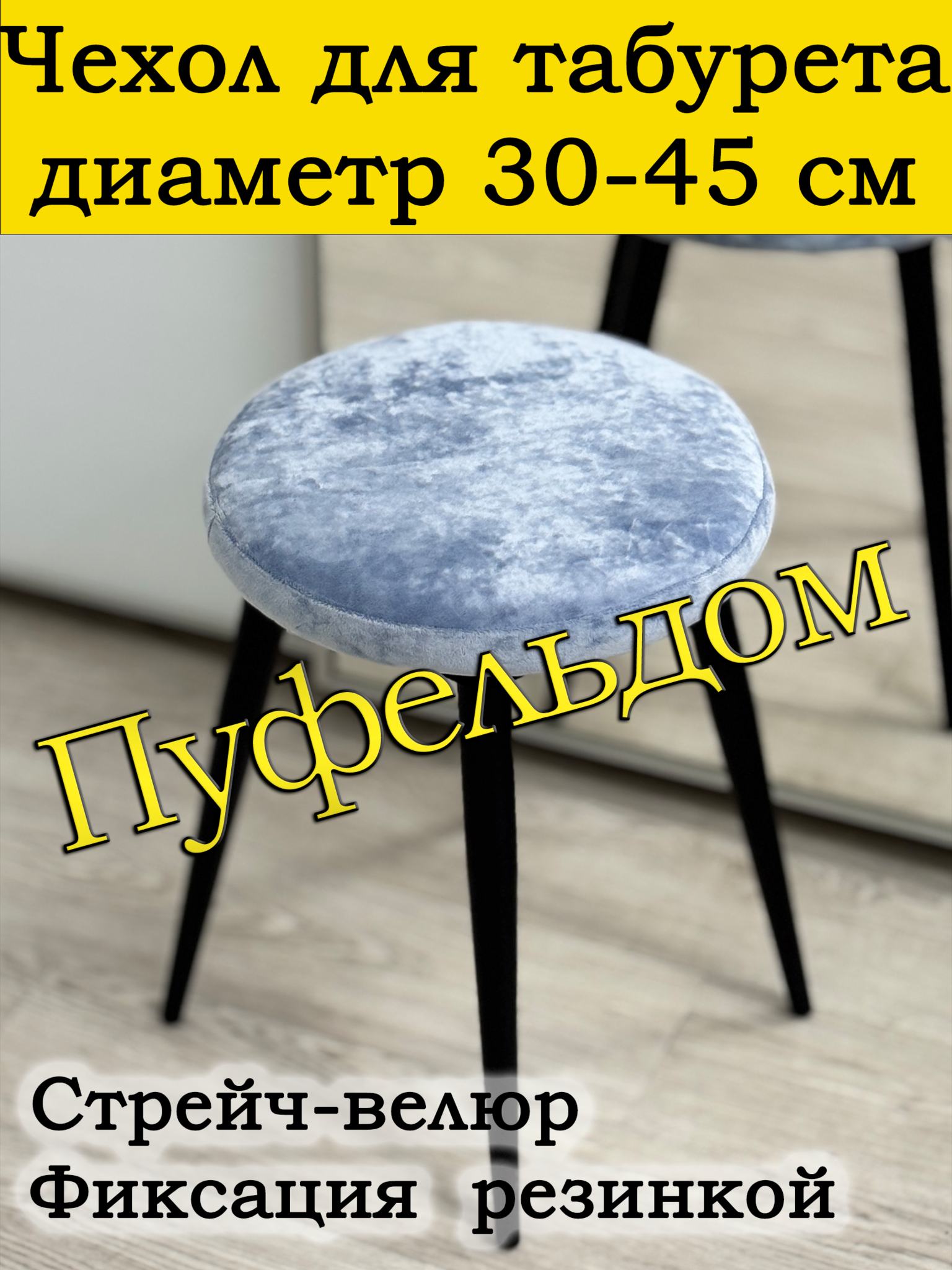 Чехол для круглого табурета, стула мастера. Подойдет для табуретов диаметром 30-45 см. Изготовлен из стрейчевого велюра. Фиксируется резинкой.