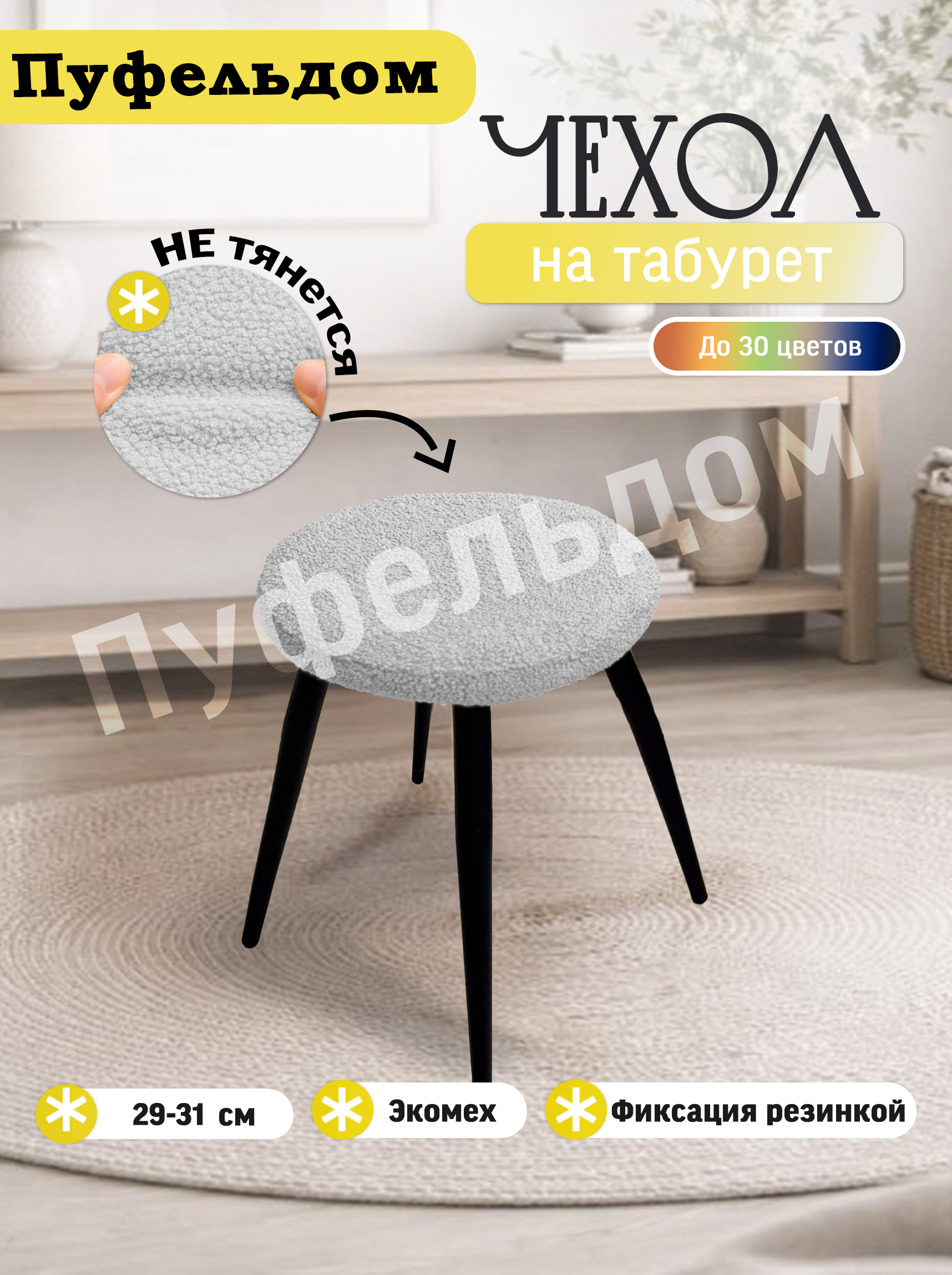 Чехол изготовлен из искусственного меха. Он бесподобен! Современная ткань букле не оставит Вас равнодушными! Материал немного тянется, поэтому может подойти на другие размеры в пределах +3 см. Снизу чехол фиксируется резинкой.