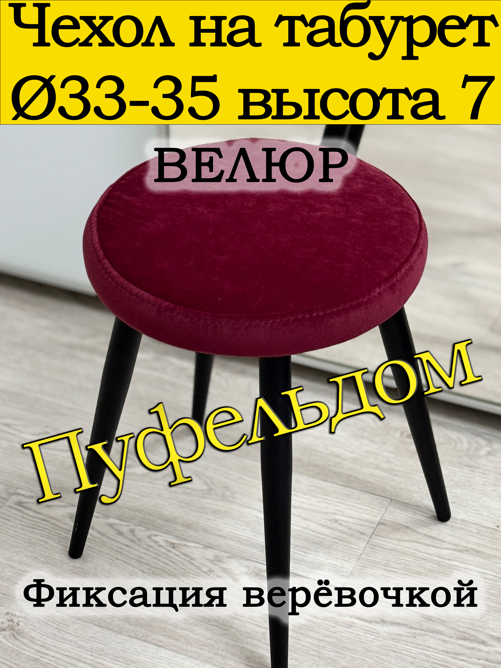 Чехол для круглого табурета, стула мастера. Диаметр 33 см. Фиксируется очень крепкой верёвочкой. Может подойти на табурет 34 и 35 см.