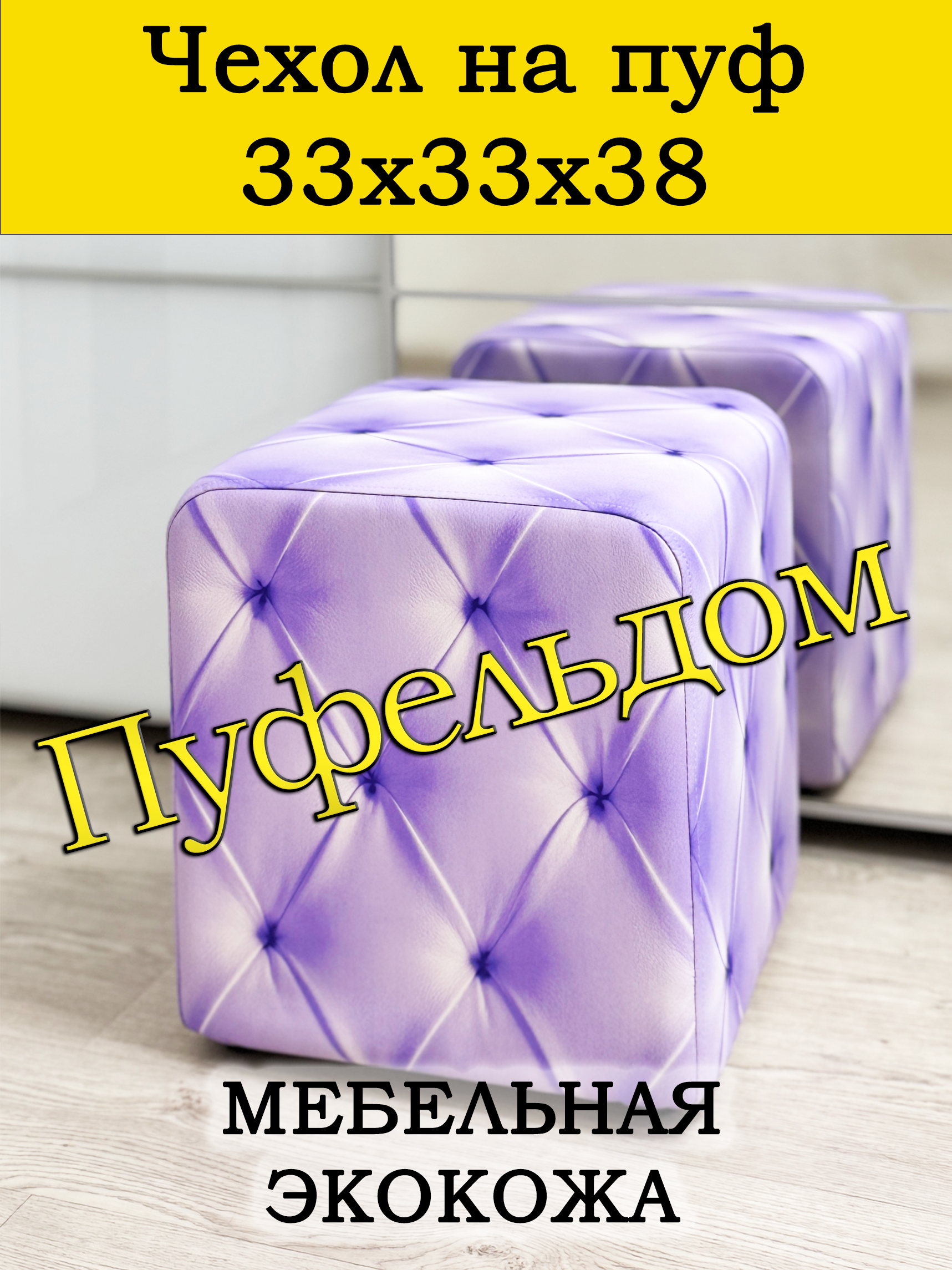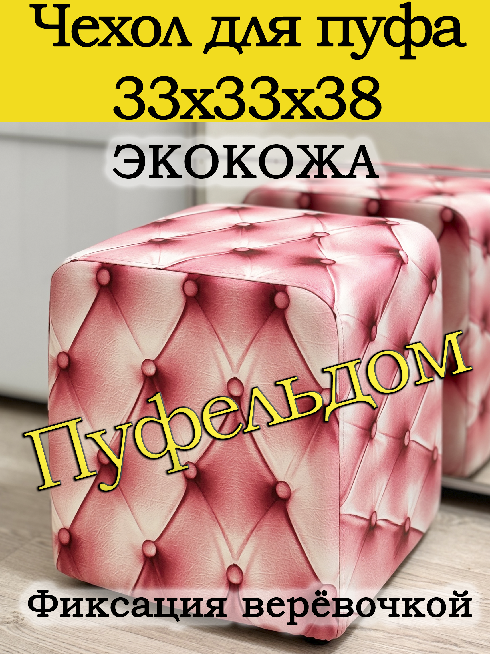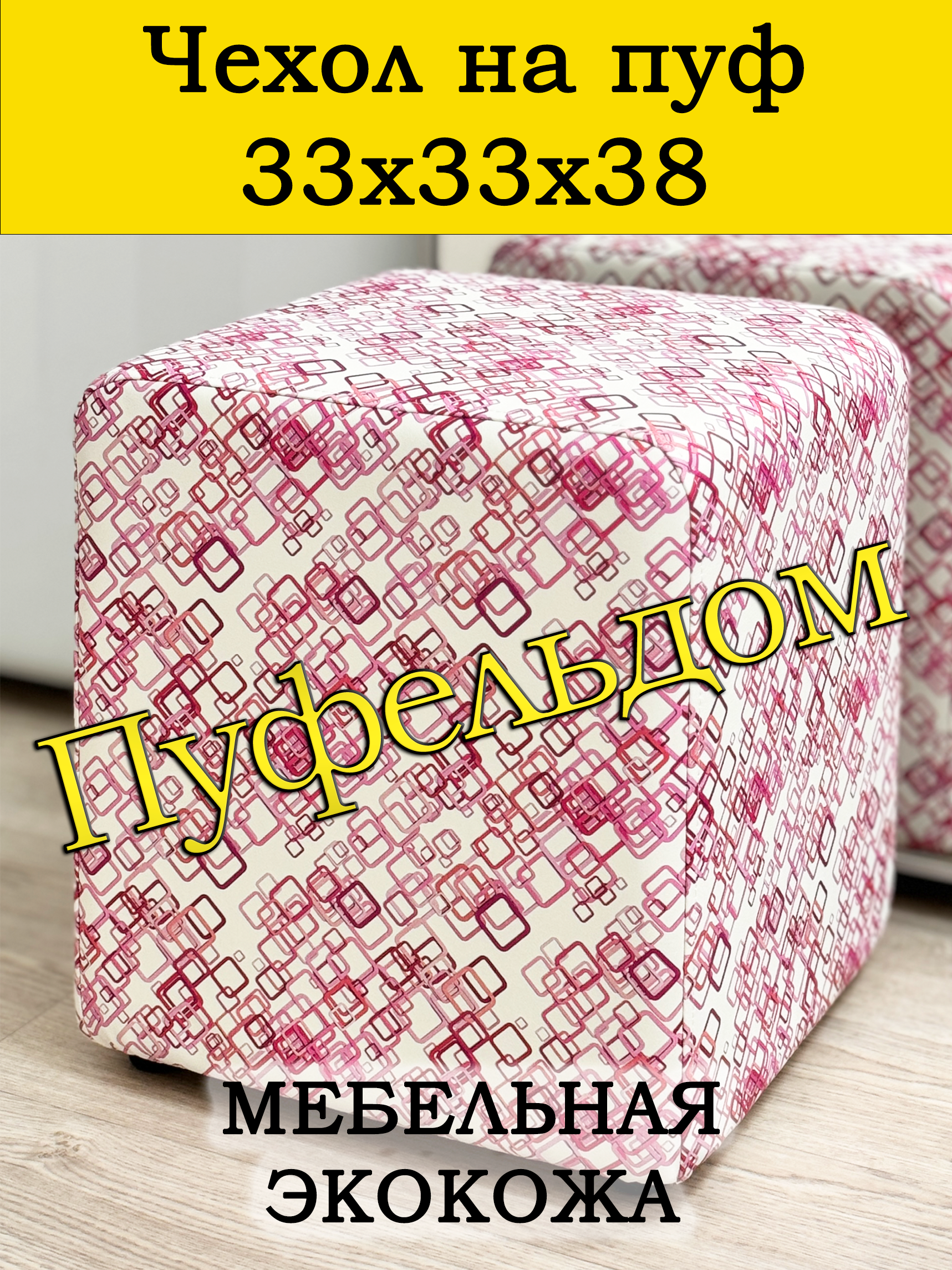 Чехол на пуфик квадратный 30 на 30 см высотой 38 см. Чехол на пуфик изготовлен из экокожи. Чехол может подойти на пуфик квадратный 32 на 32, при этом высота его изменится соответственно. Снизу фиксируется крепким шнурком - более надёжным аналогом резинки. Эта накидка на пуф защитит Ваш пуфик от загрязнений, царапин, когтей домашних животных и потёртостей. Чехол на пуфик вернёт жизнь Вашему старому пуфу, добавит изюминку интерьеру и поднимет Вам настроение. Чехол легко очищается от шерсти домашних животных, пыли, грязи и пятен. Чехол из велюра стирается в стиральной машине при температуре 30-40 градусов. Наши чехлы на пуфы будут служить Вам долгие годы! Чтобы правильно подобрать размер чехла переверните свой пуфик вниз сиденьем, измерьте его высоту от пола до дна, измерьте расстояние от края до ножек на подгиб. Для измерения длины и ширины положите пуф на бок и измерьте расстояние от пола до верхней точки.