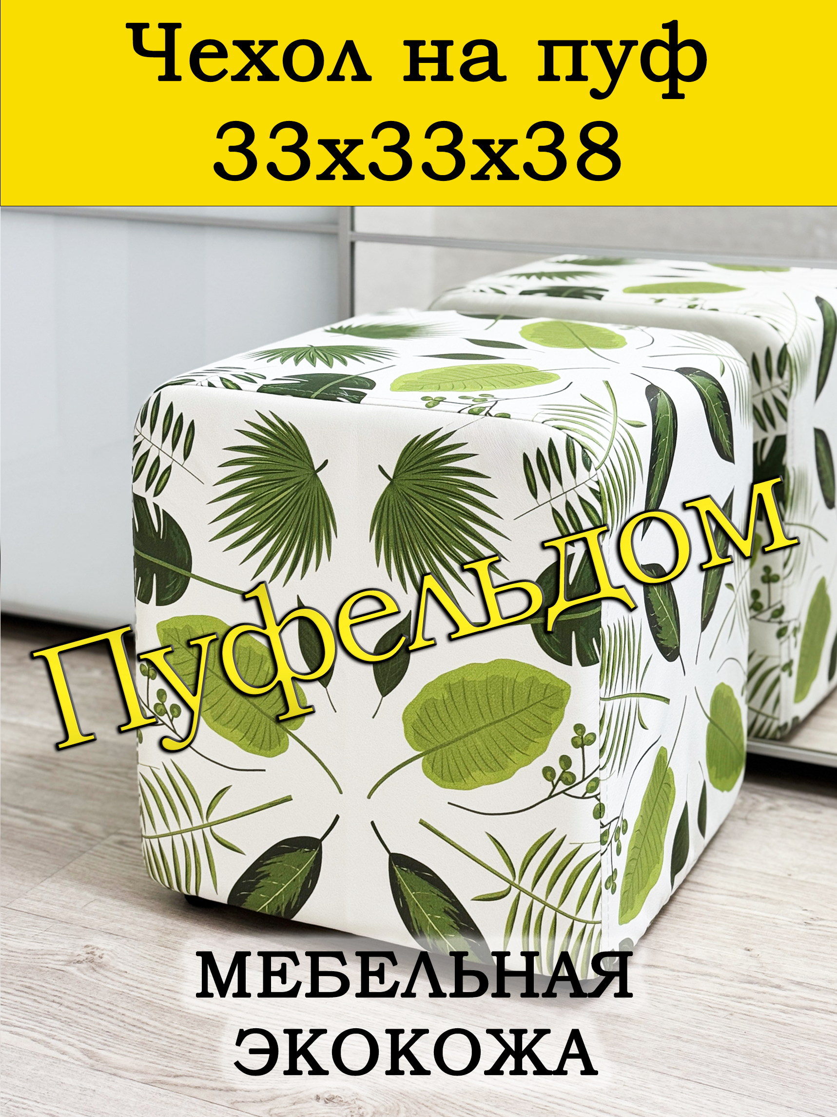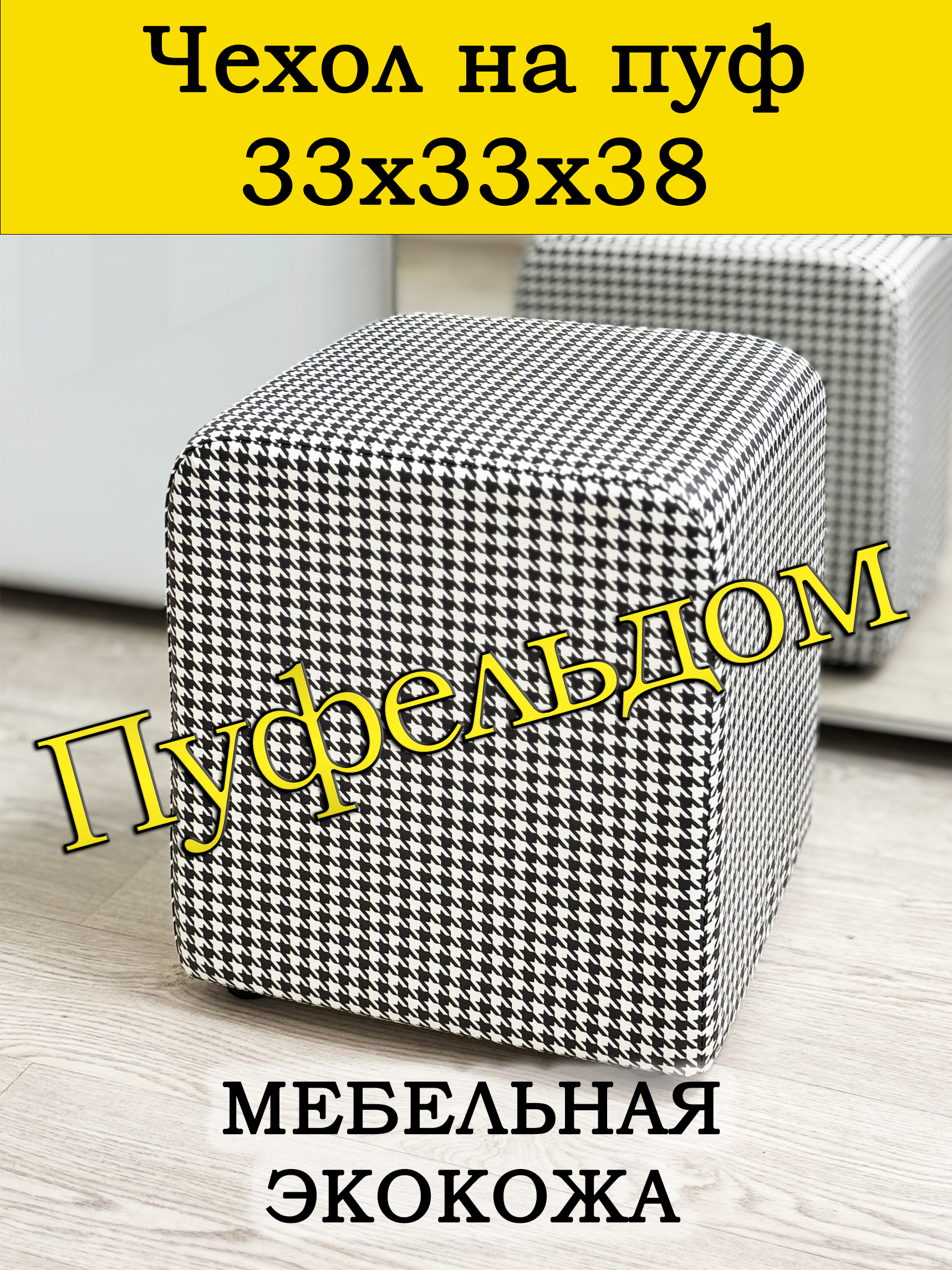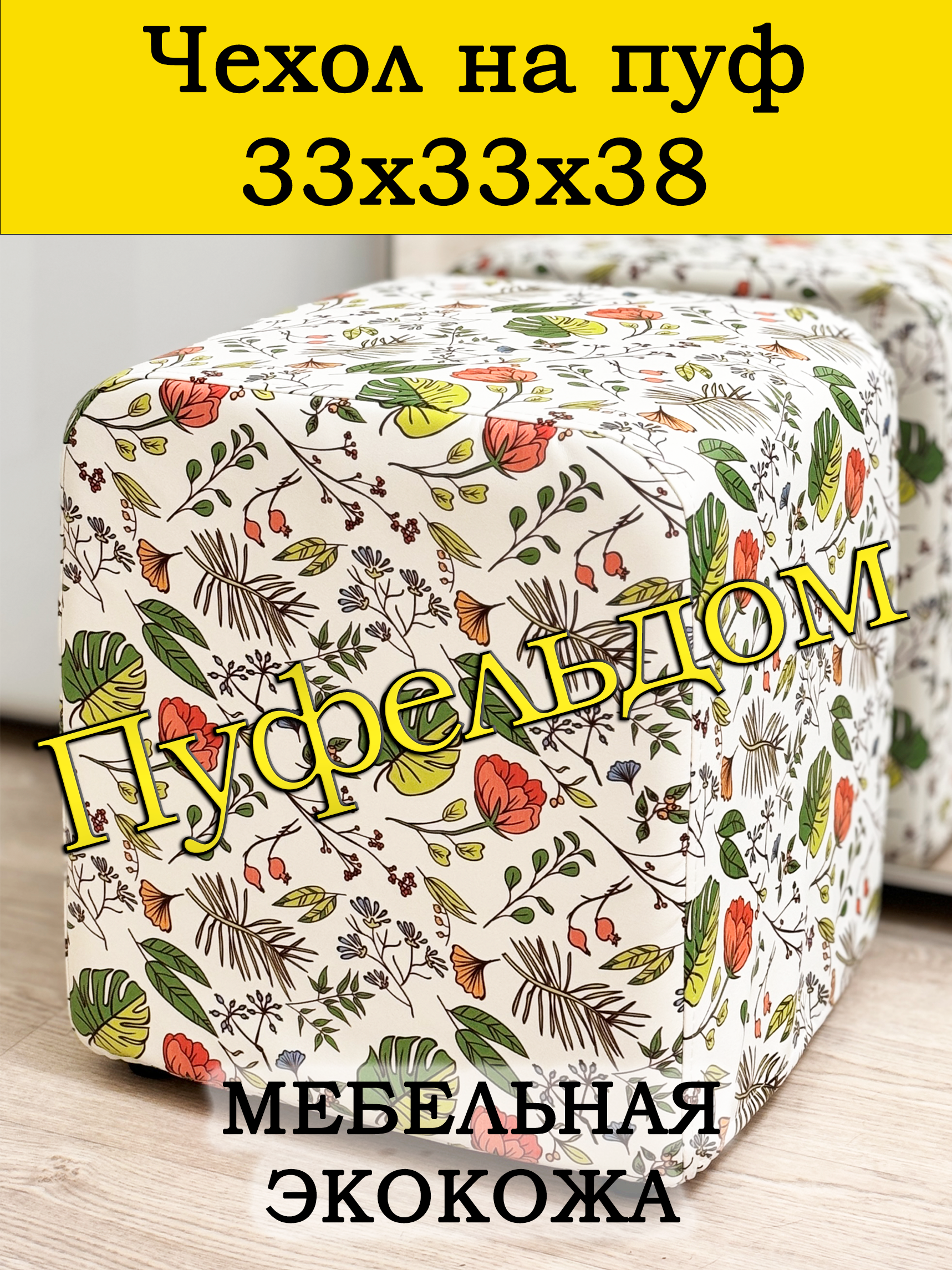 Чехол на пуфик квадратный 30 на 30 см высотой 38 см. Чехол на пуфик изготовлен из экокожи. Чехол может подойти на пуфик квадратный 32 на 32, при этом высота его изменится соответственно. Снизу фиксируется крепким шнурком - более надёжным аналогом резинки. Эта накидка на пуф защитит Ваш пуфик от загрязнений, царапин, когтей домашних животных и потёртостей. Чехол на пуфик вернёт жизнь Вашему старому пуфу, добавит изюминку интерьеру и поднимет Вам настроение. Чехол легко очищается от шерсти домашних животных, пыли, грязи и пятен. Чехол из велюра стирается в стиральной машине при температуре 30-40 градусов. Наши чехлы на пуфы будут служить Вам долгие годы! Чтобы правильно подобрать размер чехла переверните свой пуфик вниз сиденьем, измерьте его высоту от пола до дна, измерьте расстояние от края до ножек на подгиб. Для измерения длины и ширины положите пуф на бок и измерьте расстояние от пола до верхней точки.