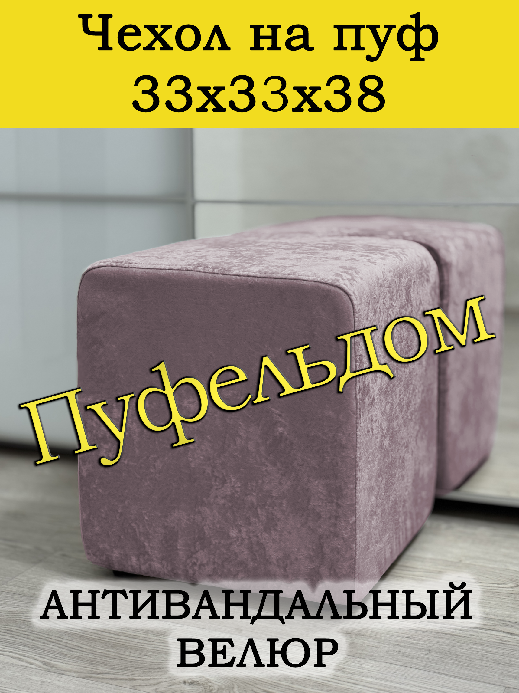 Чехол на пуфик квадратный 33 на 33 см высотой 38 см, обхват чехла: 132 см. Чехол на пуфик изготовлен из антивандального мебельного велюра. Чехол может подойти на пуфик квадратный 32 на 32 и 34 на 34, при этом высота его изменится соответственно. Снизу фиксируется крепким шнурком - более надёжным аналогом резинки. Эта накидка на пуф защитит Ваш пуфик от загрязнений, царапин, когтей домашних животных и потёртостей. Чехол на пуфик вернёт жизнь Вашему старому пуфу, добавит изюминку интерьеру и поднимет Вам настроение. Чехол легко очищается от шерсти домашних животных, пыли, грязи и пятен. Чехол из велюра стирается в стиральной машине при температуре 30-40 градусов. Наши чехлы на пуфы будут служить Вам долгие годы! Чтобы правильно подобрать размер чехла переверните свой пуфик вниз сиденьем, измерьте его высоту от пола до дна, измерьте расстояние от края до ножек на подгиб. Для измерения длины и ширины положите пуф на бок и измерьте расстояние от пола до верхней точки.