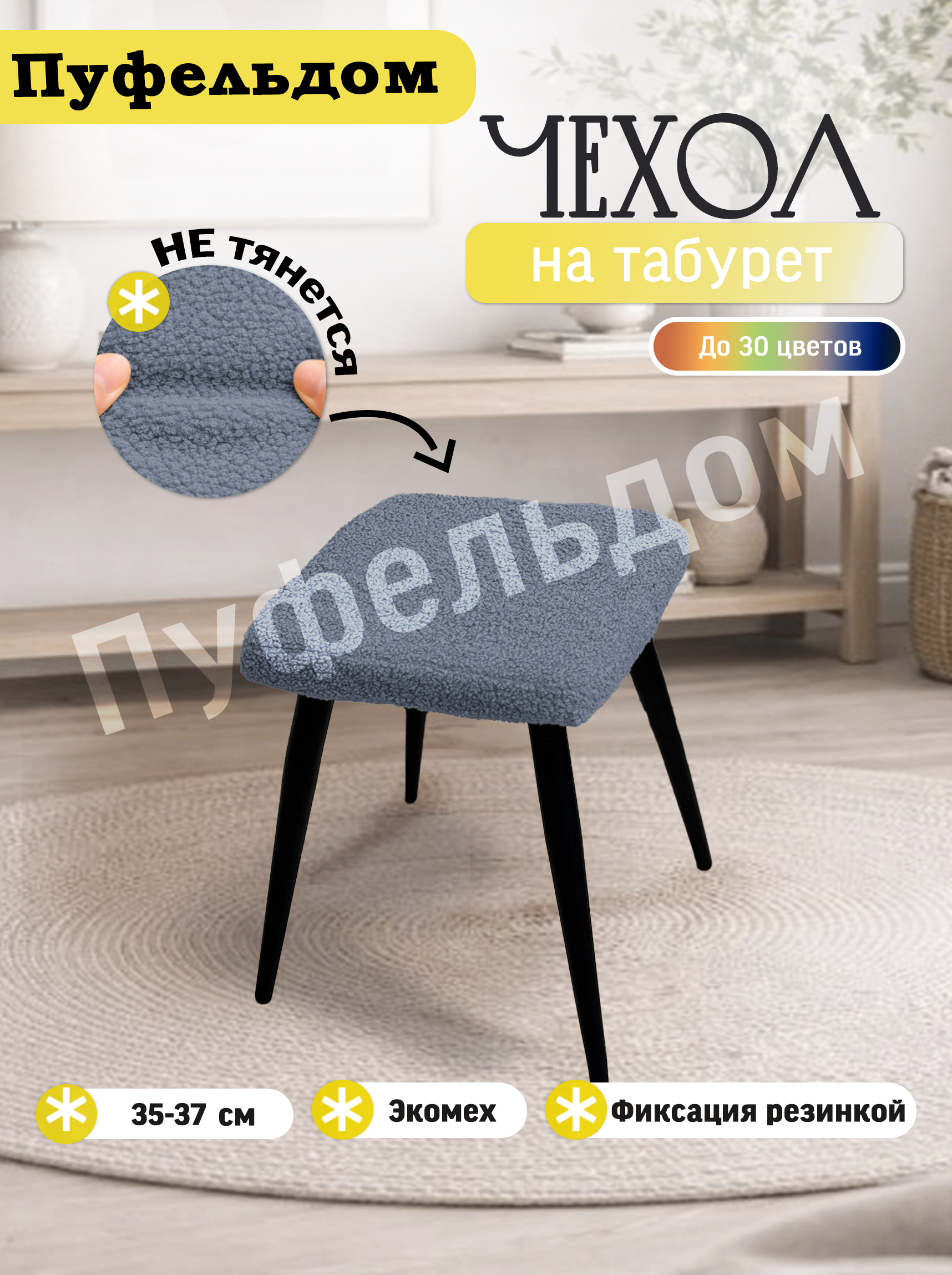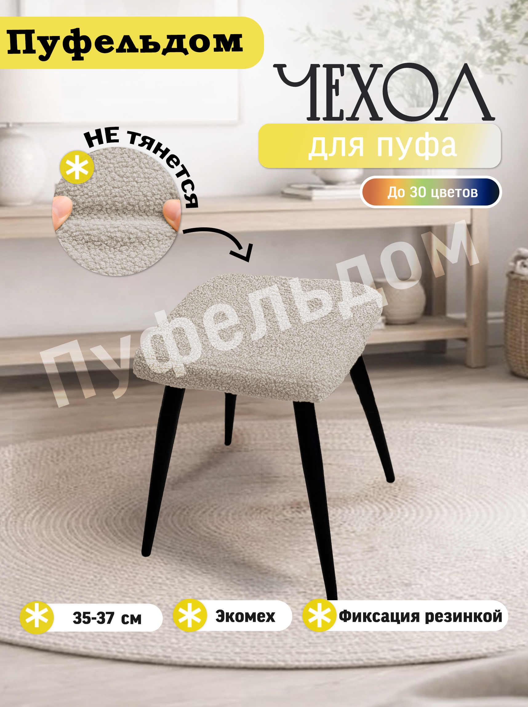Чехол изготовлен из искусственного меха. Он бесподобен! Современная ткань букле не оставит Вас равнодушными! Материал немного тянется, поэтому может подойти на другие размеры в пределах +3 см. Снизу чехол фиксируется резинкой.