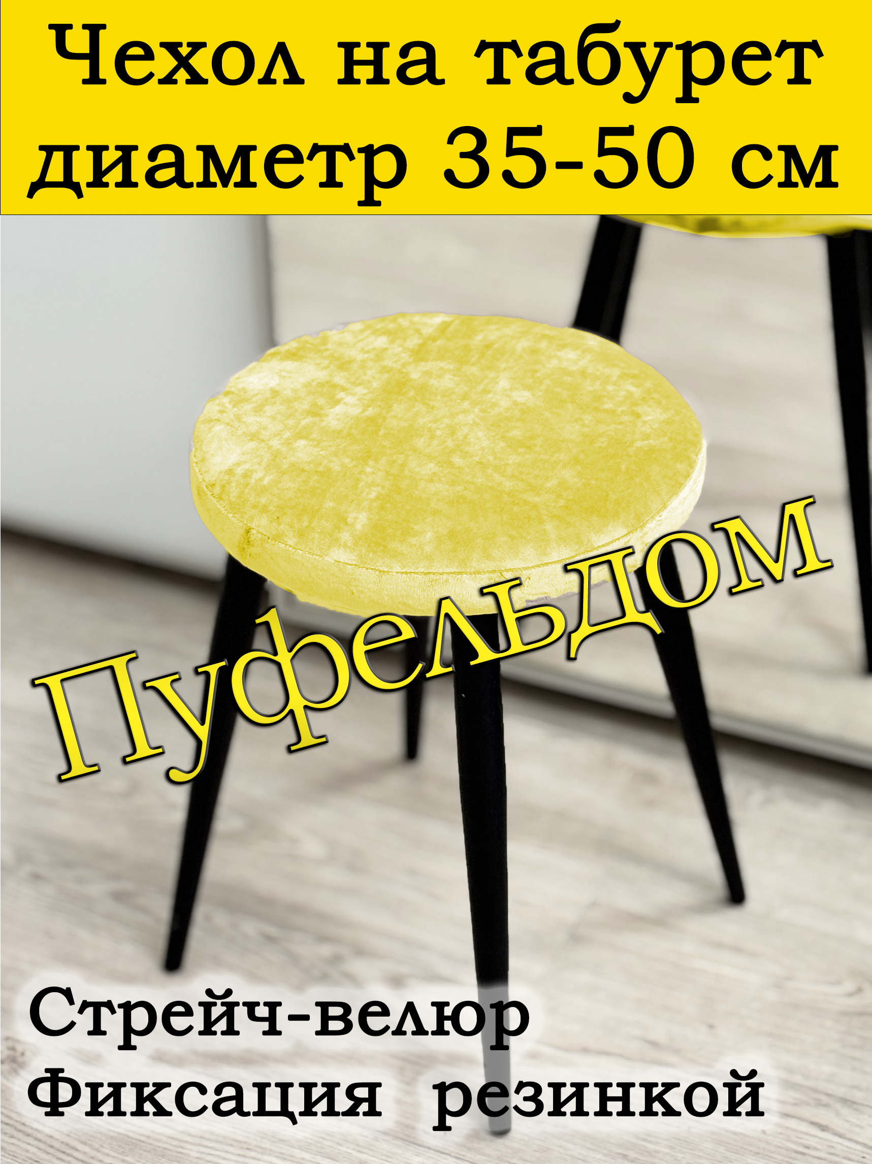 Чехол для круглого табурета, стула мастера. Подойдет для табуретов диаметром 35-50 см. Изготовлен из стрейчевого велюра. Фиксируется резинкой.