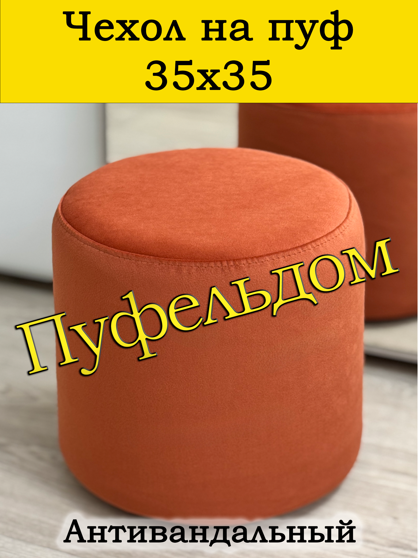 Чехол на круглый пуф 35 см в диаметре и высотой 35 см. Чехол на пуфик изготовлен из антивандального мебельного велюра или экокожи. Чехол может подойти на пуф круглый диаметром 34 см, при этом высота его изменится соответственно. Снизу фиксируется крепким шнурком - более надёжным аналогом резинки. Эта накидка на пуф защитит Ваш пуфик от загрязнений, царапин, когтей домашних животных и потёртостей. Чехол на пуфик вернёт жизнь Вашему старому пуфу, добавит изюминку интерьеру и поднимет Вам настроение. Чехол легко очищается от шерсти домашних животных, пыли, грязи и пятен. Чехол из велюра стирается в стиральной машине при температуре 30-40 градусов. Наши чехлы на пуфы будут служить Вам долгие годы!