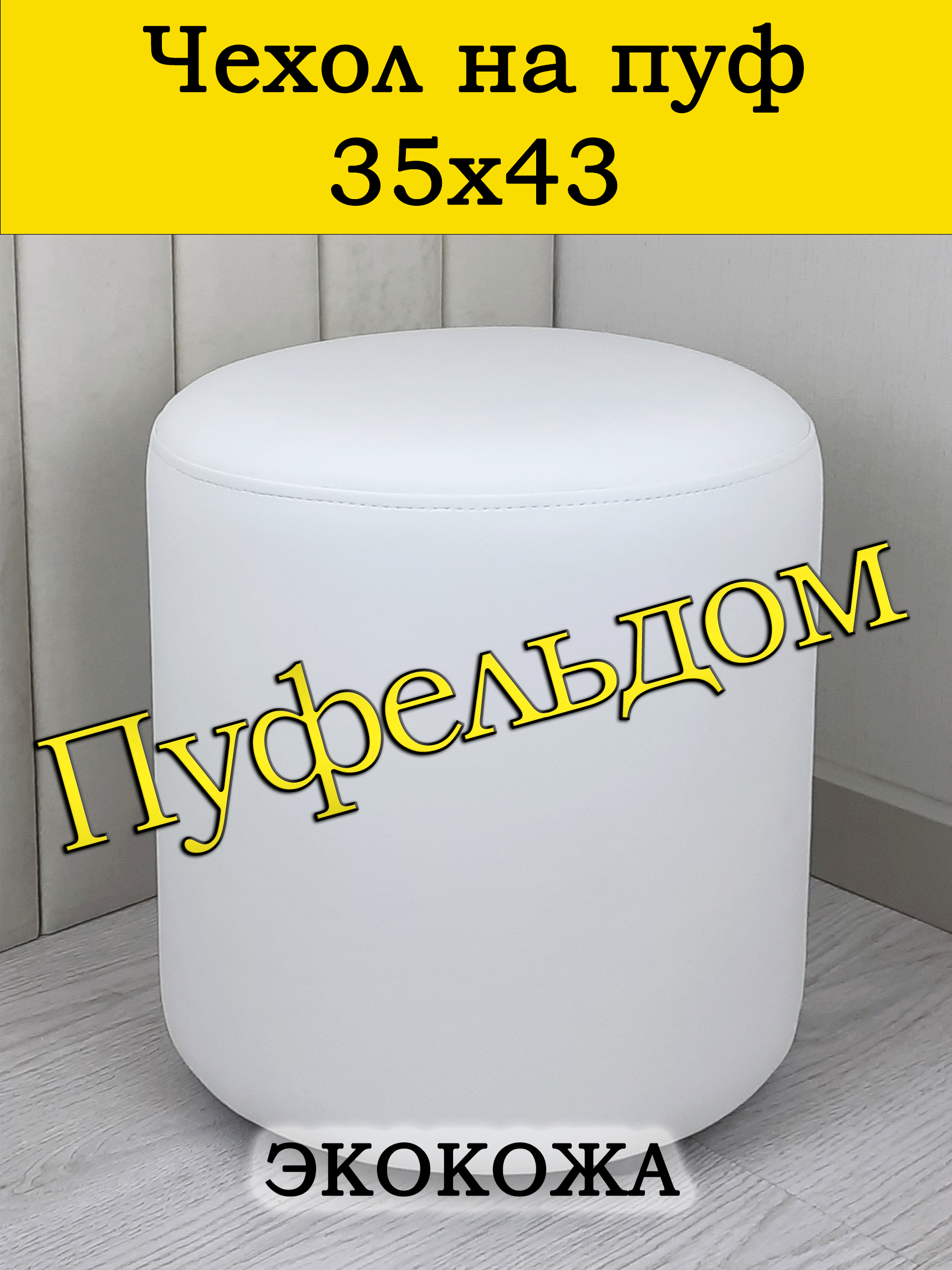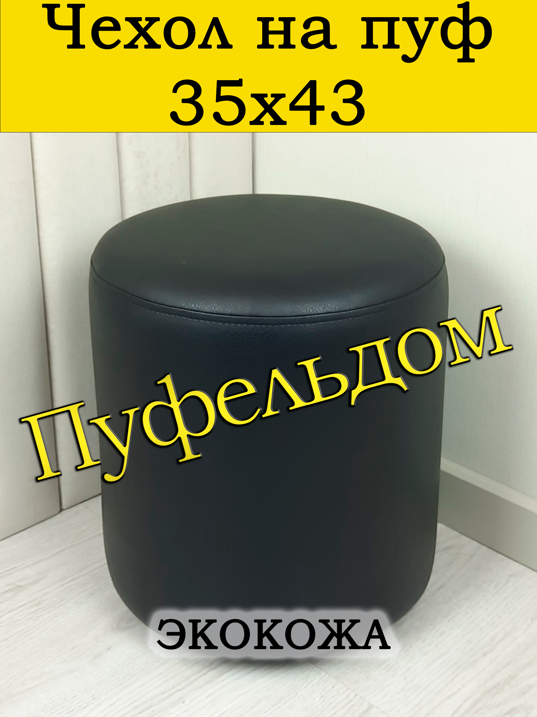 Чехол на круглый пуф диаметром 35 см, высотой 43 см. Чехол на пуфик изготовлен из мебельной экокожи. Чехол может подойти на пуф круглый диаметром 34 см, при этом высота его изменится соответственно. Снизу фиксируется крепким шнурком - более надёжным аналогом резинки. Эта накидка на пуф защитит Ваш пуфик от загрязнений, царапин, когтей домашних животных и потёртостей. Чехол на пуфик вернёт жизнь Вашему старому пуфу, добавит изюминку интерьеру и поднимет Вам настроение. Чехол легко очищается от шерсти домашних животных, пыли, грязи и пятен. Наши чехлы на пуфы будут служить Вам долгие годы! Чтобы правильно подобрать размер чехла переверните свой пуфик вниз сиденьем, измерьте его высоту от пола до дна, измерьте расстояние от края до ножек на подгиб. Для измерения длины и ширины положите пуф на бок и измерьте расстояние от пола до верхней точки.