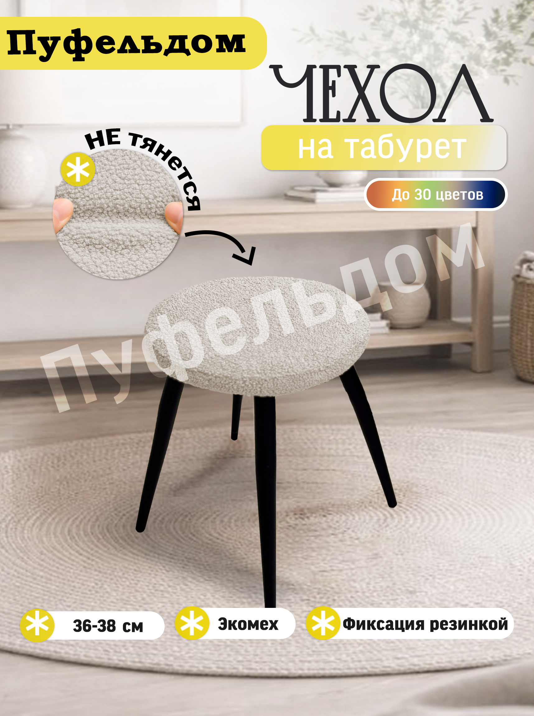 Чехол изготовлен из искусственного меха. Он бесподобен! Современная ткань букле не оставит Вас равнодушными! Материал немного тянется, поэтому может подойти на другие размеры в пределах +3 см. Снизу чехол фиксируется резинкой.