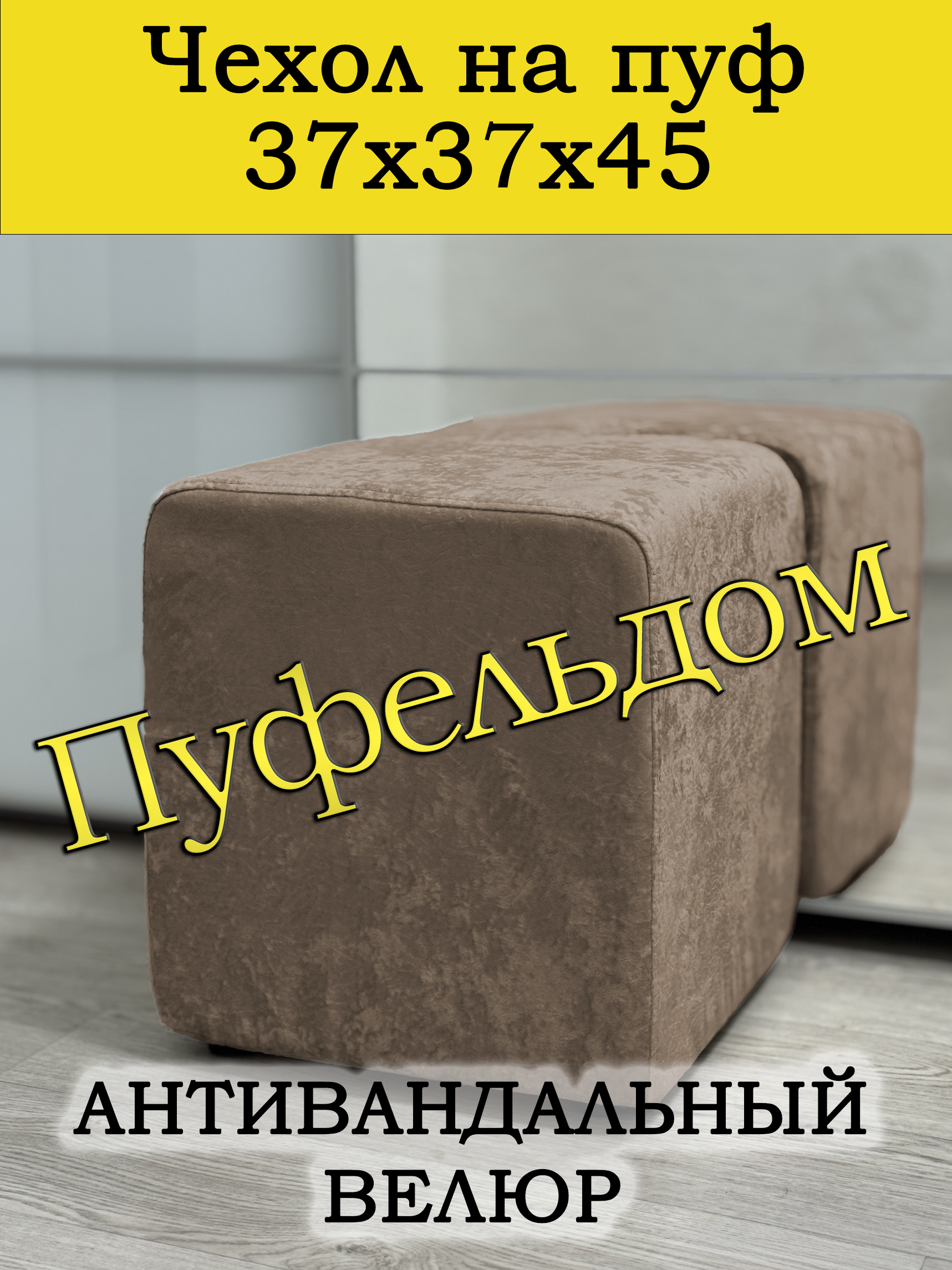 Чехол на пуфик квадратный 37 на 37 см высотой 45 см, обхват чехла: 148 см. Чехол на пуфик изготовлен из антивандального мебельного велюра. Чехол может подойти на пуфик квадратный 36 на 36 и 38 на 38, при этом высота его изменится соответственно. Снизу фиксируется крепким шнурком - более надёжным аналогом резинки. Эта накидка на пуф защитит Ваш пуфик от загрязнений, царапин, когтей домашних животных и потёртостей. Чехол на пуфик вернёт жизнь Вашему старому пуфу, добавит изюминку интерьеру и поднимет Вам настроение. Чехол легко очищается от шерсти домашних животных, пыли, грязи и пятен. Чехол из велюра стирается в стиральной машине при температуре 30-40 градусов. Наши чехлы на пуфы будут служить Вам долгие годы! Чтобы правильно подобрать размер чехла переверните свой пуфик вниз сиденьем, измерьте его высоту от пола до дна, измерьте расстояние от края до ножек на подгиб. Для измерения длины и ширины положите пуф на бок и измерьте расстояние от пола до верхней точки.