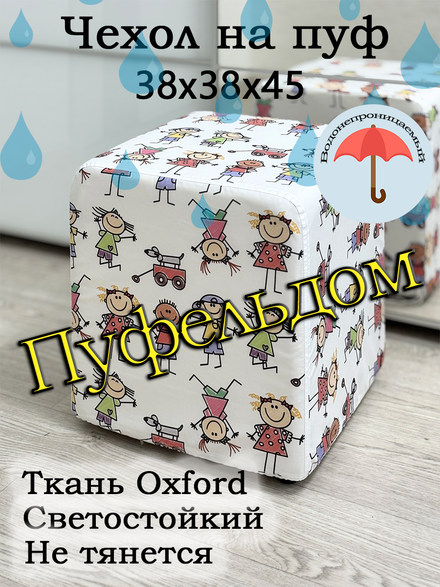 Чехол на пуфик квадратный. Размеры 38 на 38 см, высота 45 см. Чехол сохранит Ваш пуф даже на улице в дождливую погоду, а рисунок будет радовать Вас долгие годы, так как практически не выцветает. Чехол можноать, мять, мочить, стирать, гладить и сушить под палящим солнцем. Материал не тянется, даже немножко. Пожалуйста, учитывайте это при заказе. Если Ваш пуфик слегка больше, то чехол может подойти только за счёт возможного сжатия поролона Вашего пуфика на боковинах и сиденье. Снизу затягивается крепкой верёвочкой.