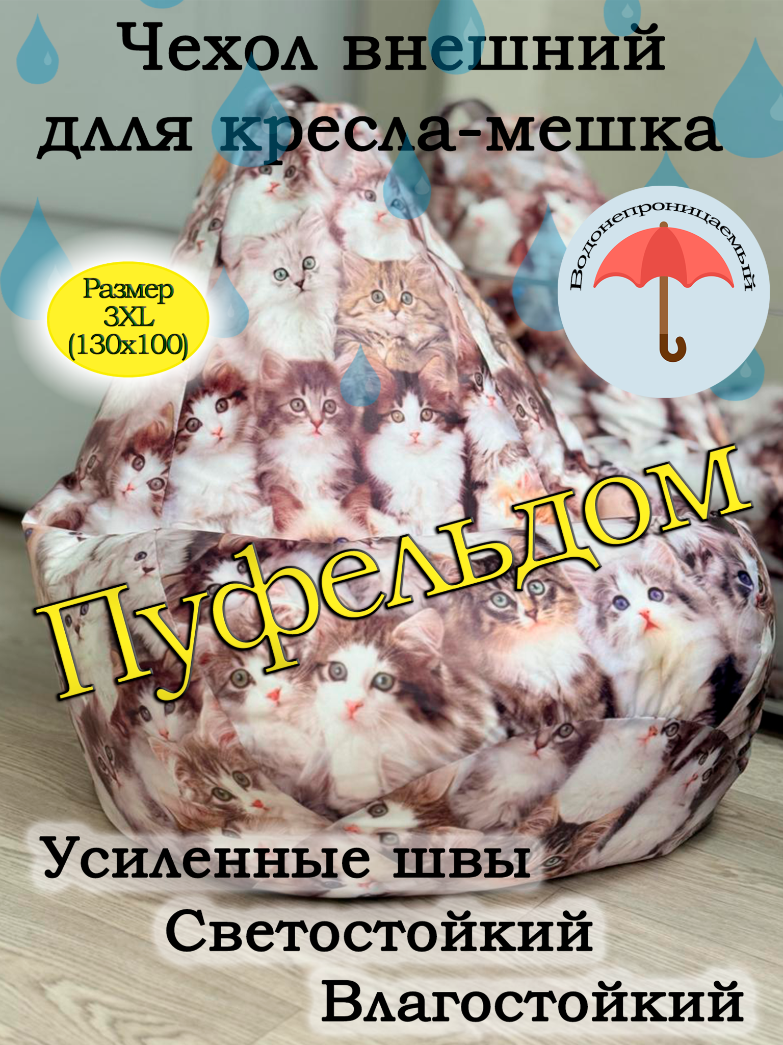 Чехол для кресла-мешка тканевый, изготовлен из водонепроницаемого материала Оксфорд толщиной нити 210 D. Мешок из оксфорда очень прочный, легко стирается и может использоваться на улице.