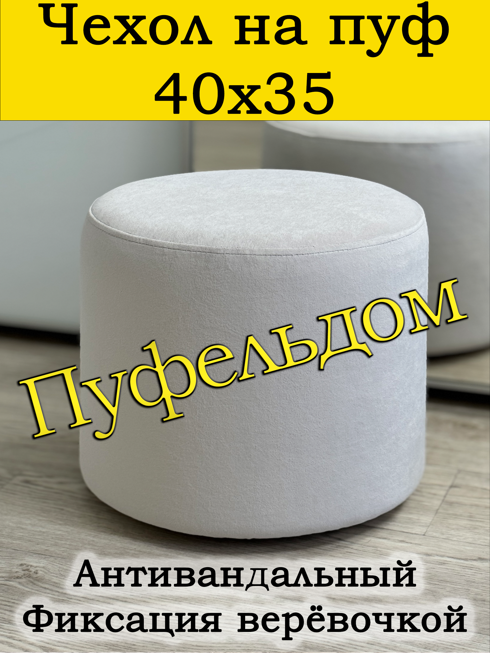 Чехол на круглый пуф 40 см в диаметре и высотой 35 см. Чехол на пуфик изготовлен из антивандального мебельного велюра или экокожи. Чехол может подойти на пуф круглый диаметром 39 и 41 см, при этом высота его изменится соответственно. Снизу фиксируется крепким шнурком - более надёжным аналогом резинки. Эта накидка на пуф защитит Ваш пуфик от загрязнений, царапин, когтей домашних животных и потёртостей. Чехол на пуфик вернёт жизнь Вашему старому пуфу, добавит изюминку интерьеру и поднимет Вам настроение. Чехол легко очищается от шерсти домашних животных, пыли, грязи и пятен. Чехол из велюра стирается в стиральной машине при температуре 30 градусов. Наши чехлы на пуфы будут служить Вам долгие годы!