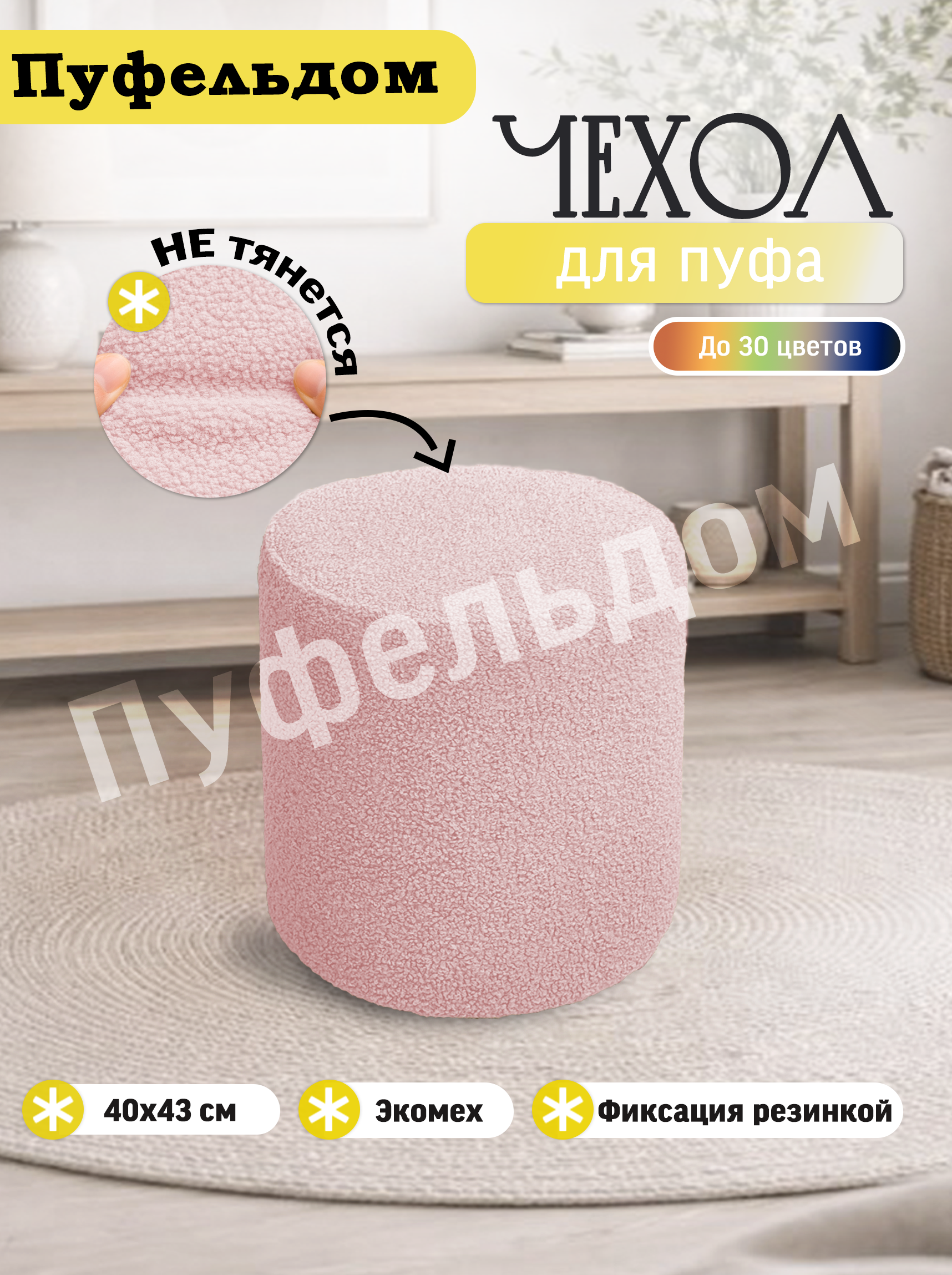 Чехол изготовлен из искусственного меха. Он бесподобен! Современная ткань букле не оставит Вас равнодушными! Материал немного тянется, поэтому может подойти на другие размеры в пределах +3 см. Снизу чехол фиксируется резинкой.