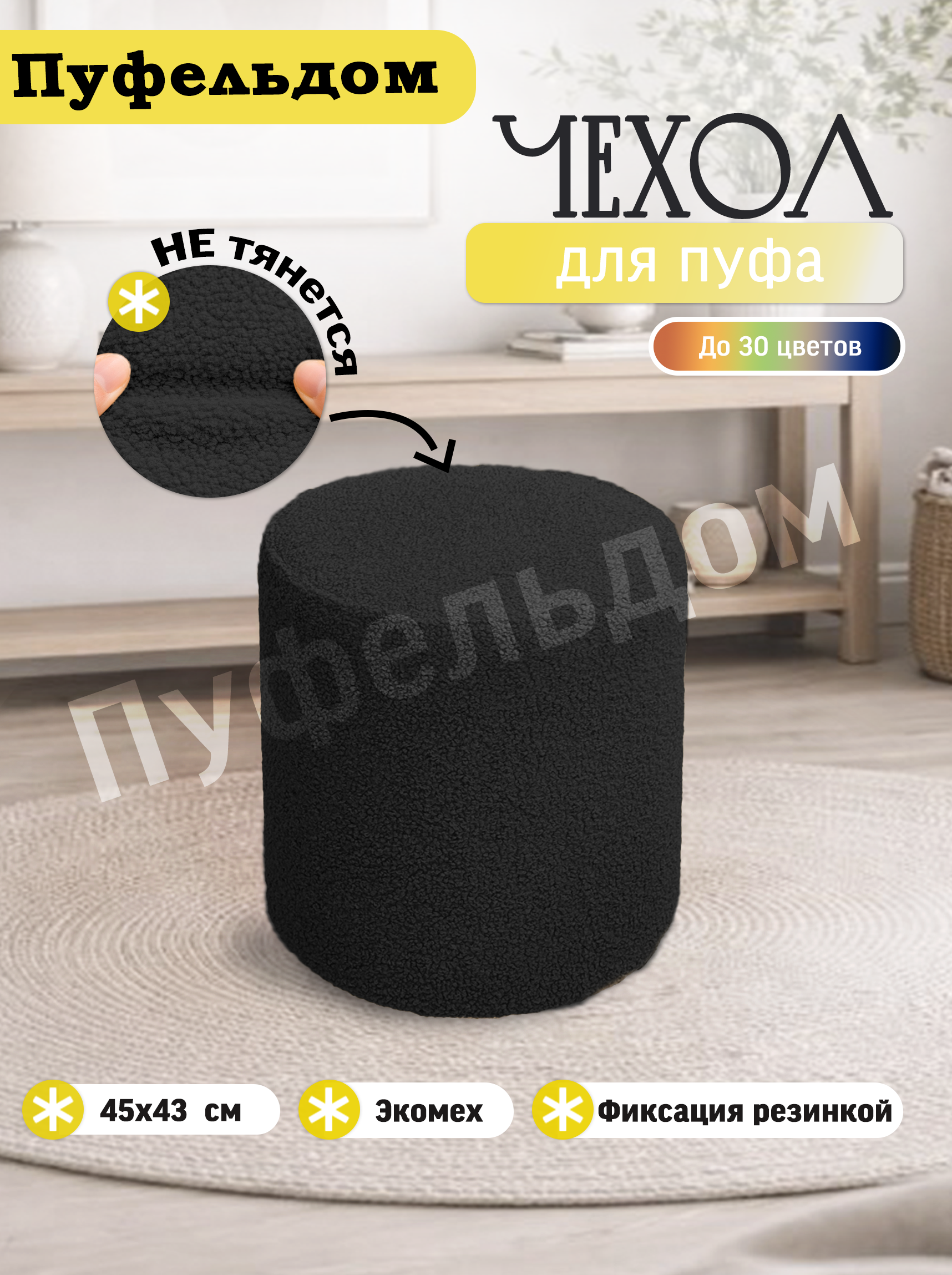 Чехол изготовлен из искусственного меха. Он бесподобен! Современная ткань букле не оставит Вас равнодушными! Материал немного тянется, поэтому может подойти на другие размеры в пределах +3 см. Снизу чехол фиксируется резинкой.