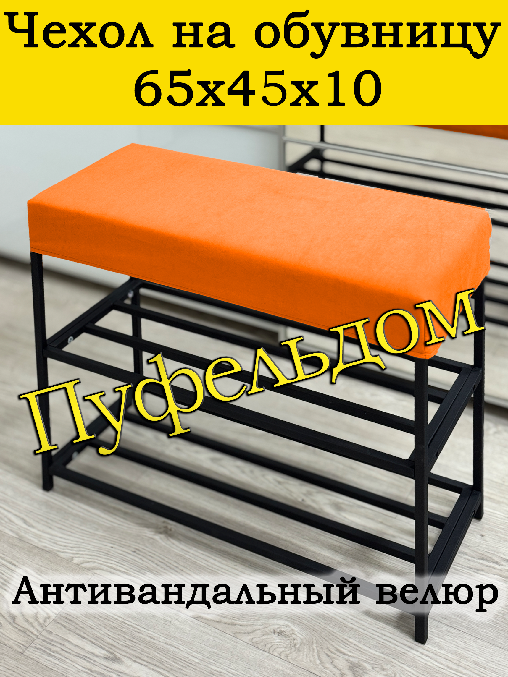 Чехол на обувницу прямоугольный 65 на 45 см высотой 10 см. Изготовлен из антивандального велюра. Эта накидка для прихожей защитит Ваш пуфик от загрязнений, царапин, когтей домашних животных и потёртостей. Чехол на банкетку вернёт жизнь Вашему старому изделию, добавит изюминку интерьеру и поднимет Вам настроение. Чехол легко очищается от шерсти домашних животных, пыли, грязи и пятен. Чехол из велюра стирается в при температуре 30 градусов. Изделие будет служить Вам долгие годы! Чехол не тянется, выбирайте размер в размер.