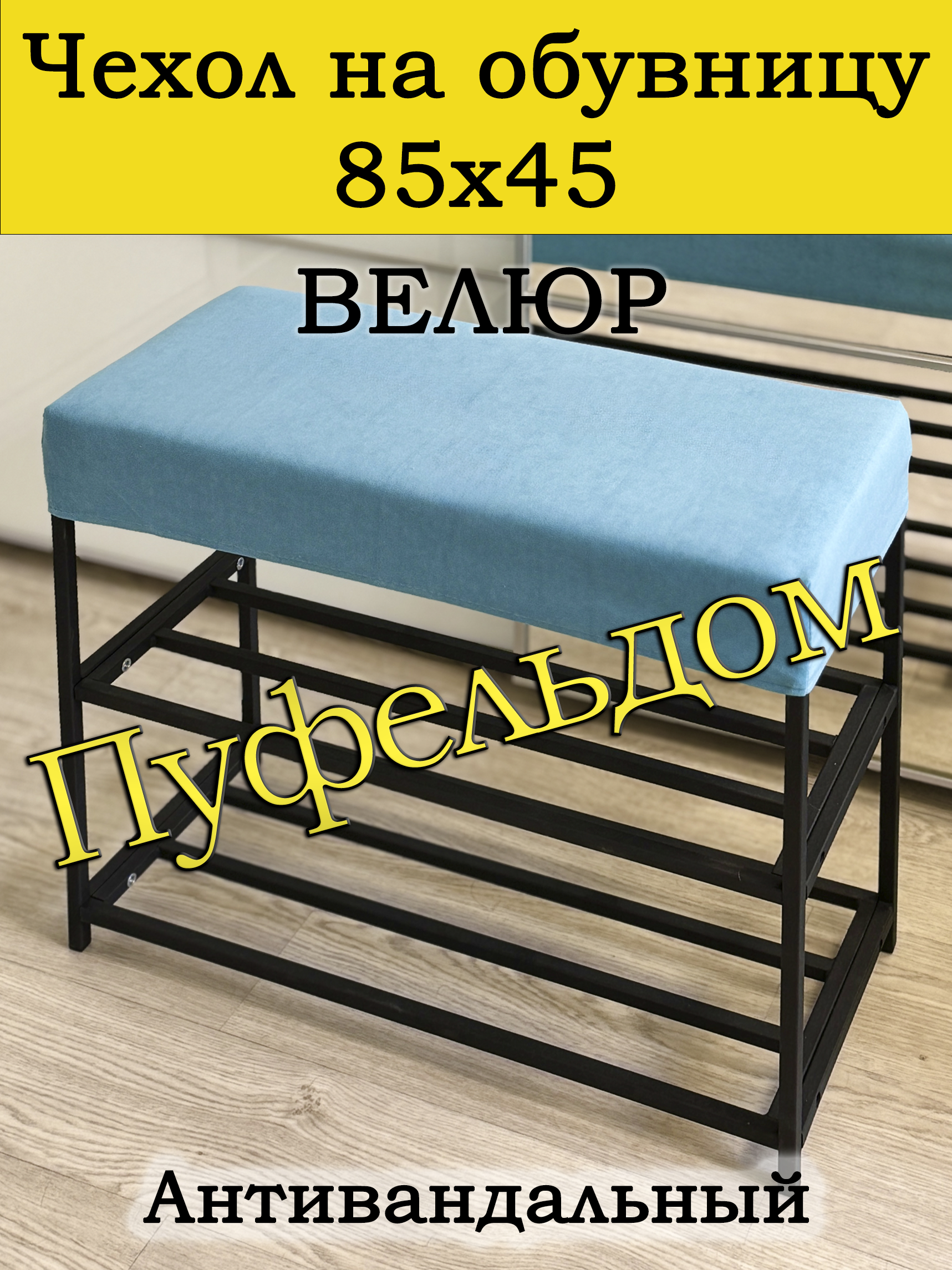 Чехол на обувницу прямоугольный 85 на 45 см высотой 10 см. Изготовлен из антивандального велюра. Эта накидка для прихожей защитит Ваш пуфик от загрязнений, царапин, когтей домашних животных и потёртостей. Чехол на банкетку вернёт жизнь Вашему старому изделию, добавит изюминку интерьеру и поднимет Вам настроение. Чехол легко очищается от шерсти домашних животных, пыли, грязи и пятен. Чехол из велюра стирается в при температуре 30 градусов. Изделие будет служить Вам долгие годы! Чехол не тянется, выбирайте размер в размер.