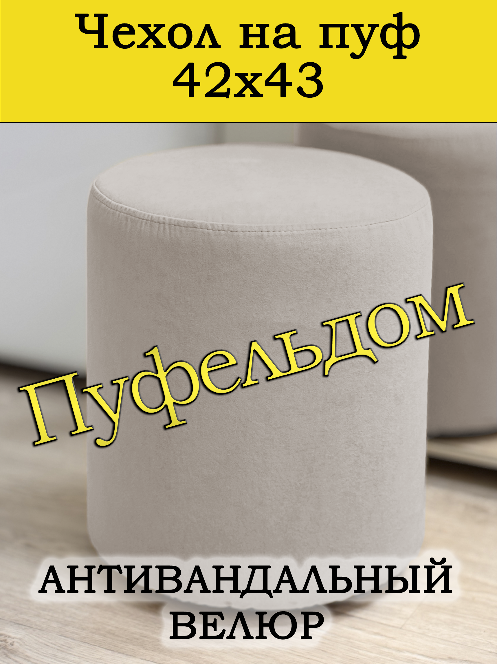 Чехол на круглый пуф диаметром 42 см, высотой 43 см. Чехол на пуфик изготовлен из антивандального мебельного велюра или экокожи. Чехол может подойти на пуф круглый диаметром 41 и 43 см, при этом высота его изменится соответственно. Снизу фиксируется крепким шнурком - более надёжным аналогом резинки. Эта накидка на пуф защитит Ваш пуфик от загрязнений, царапин, когтей домашних животных и потёртостей. Чехол на пуфик вернёт жизнь Вашему старому пуфу, добавит изюминку интерьеру и поднимет Вам настроение. Чехол легко очищается от шерсти домашних животных, пыли, грязи и пятен. Чехол из велюра стирается в стиральной машине при температуре 30-40 градусов. Наши чехлы на пуфы будут служить Вам долгие годы! Чтобы правильно подобрать размер чехла переверните свой пуфик вниз сиденьем, измерьте его высоту от пола до дна, измерьте расстояние от края до ножек на подгиб. Для измерения длины и ширины положите пуф на бок и измерьте расстояние от пола до верхней точки.