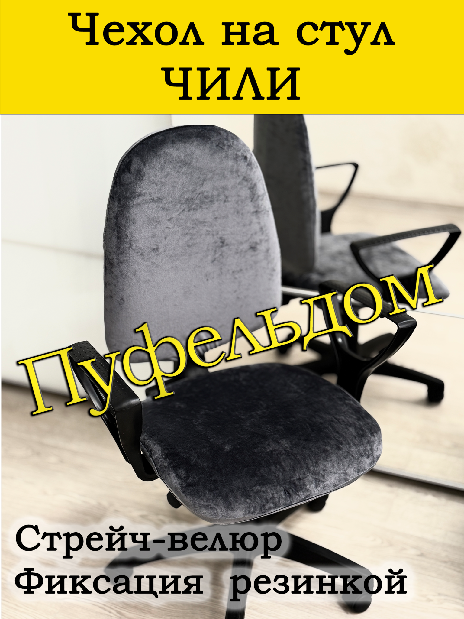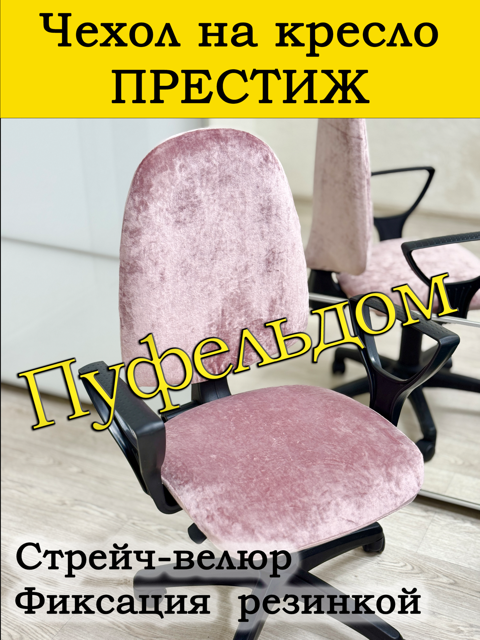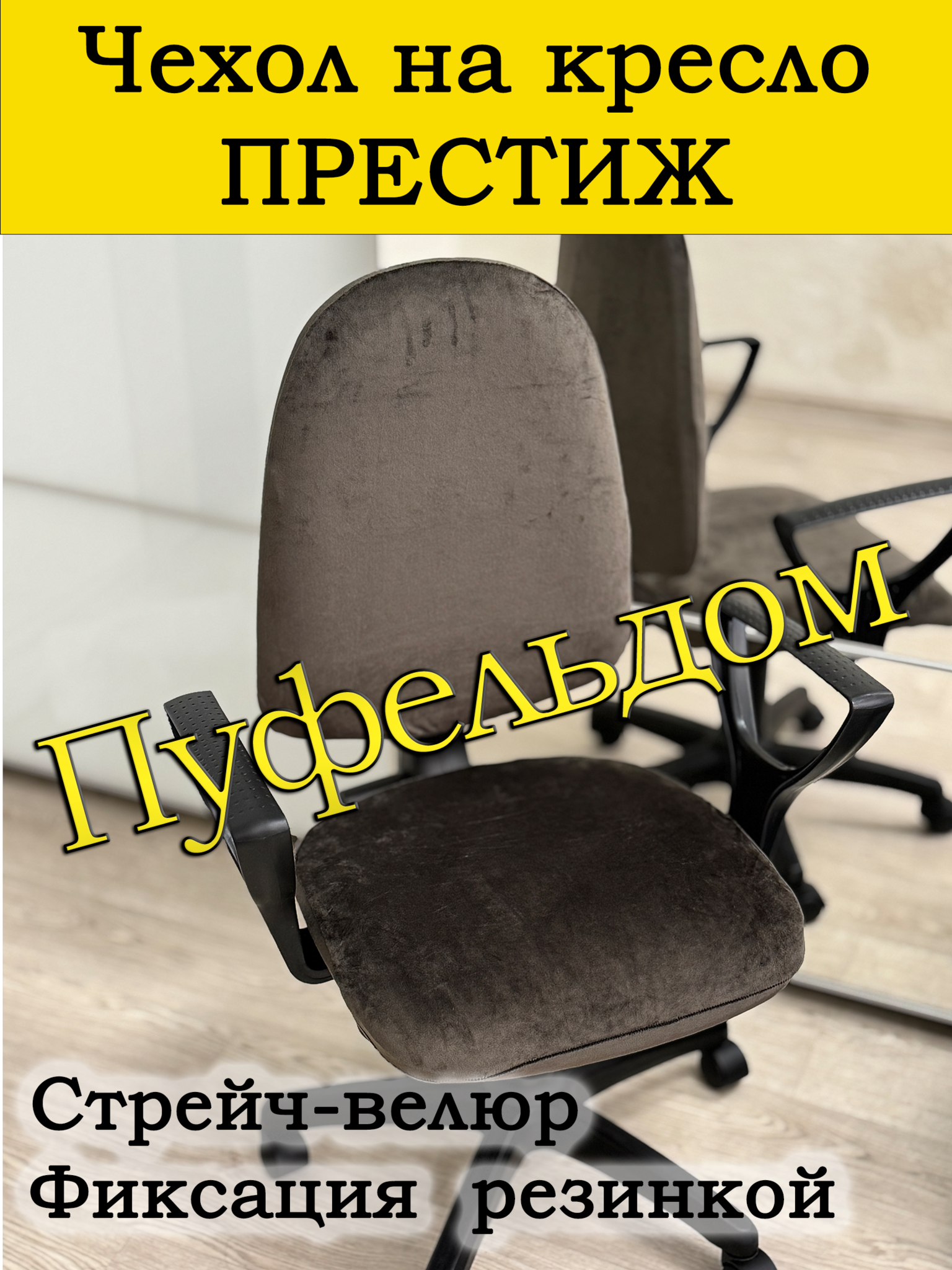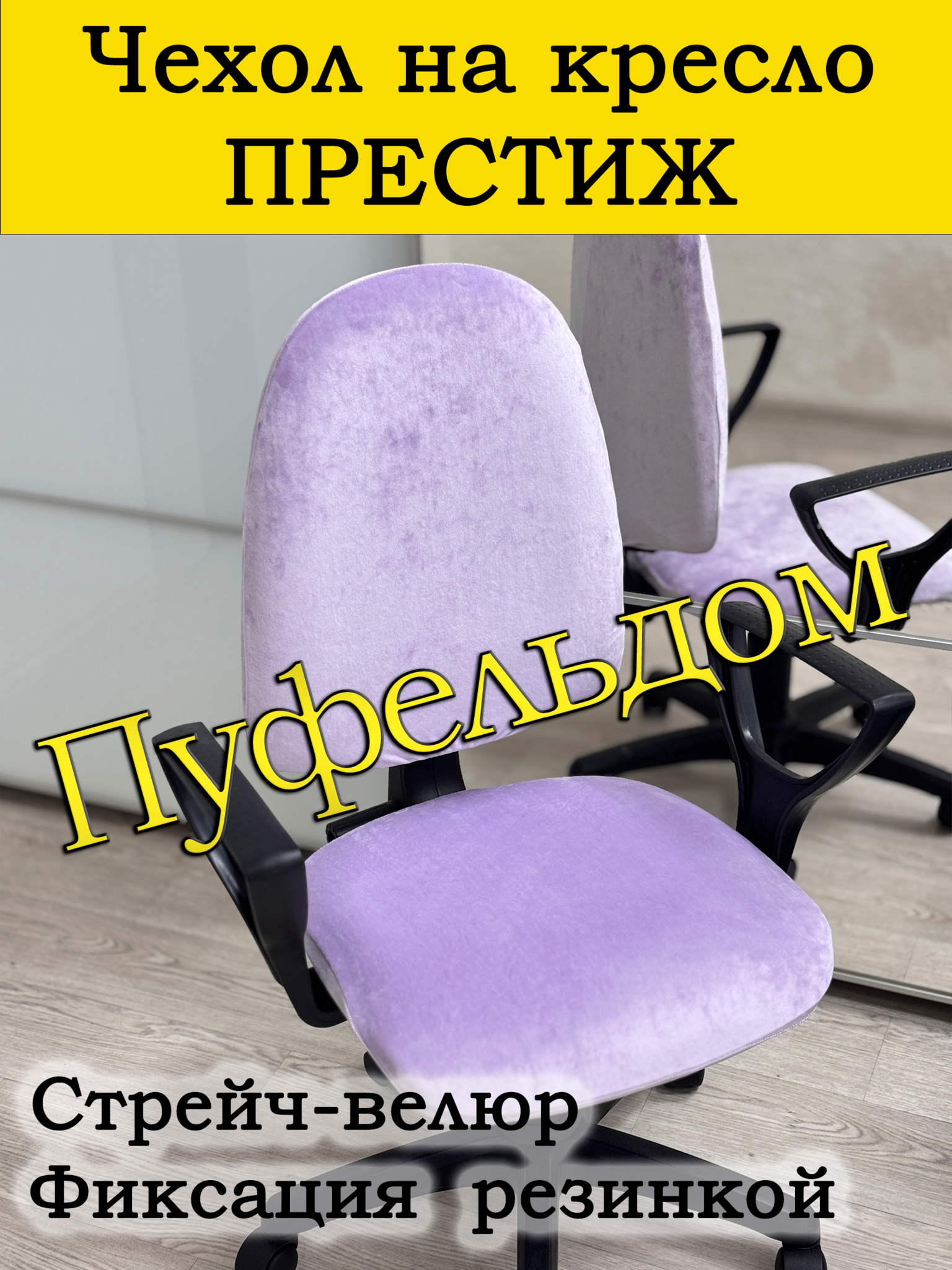 Безразмерный чехол для офисного компьютерного кресла Престиж изготовлен из тянущегося велюра. Спинка и сиденье снизу фиксируются крепкой резинкой. Может подойти и на другие модели подобных форм и размеров