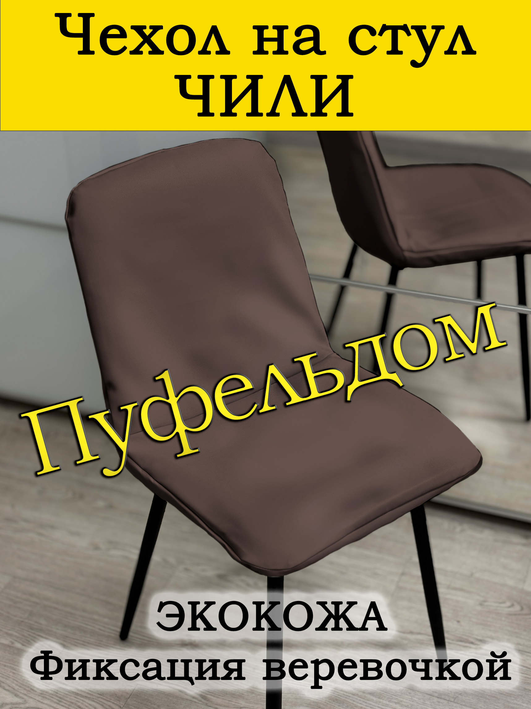 Чехол на кухонный стул Чили изготовлен из экокожи. Не требует особых навыков для надевания. Спинка закрывает стул с двух сторон. Чехол фиксируется крепкой верёвочкой, позволяющей достаточно сильно утянуть изделие на стуле. Ткань подходит для интенсивного использования как в профессиональных, так и в бытовых условиях. Ширина спинки в надетом состоянии (от шва до шва): 38 см сверху, 46 см снизу. Высота спинки в надетом состоянии (от шва до шва): 42 см. Ширина сиденья в надетом состоянии (от шва до шва): 46 см. Глубина сиденья в надетом состоянии (от шва до шва): 40 см Так же можем изготовить чехлы в любых объемах по Вашим индивидуальным параметрам. Возможно брендирование.