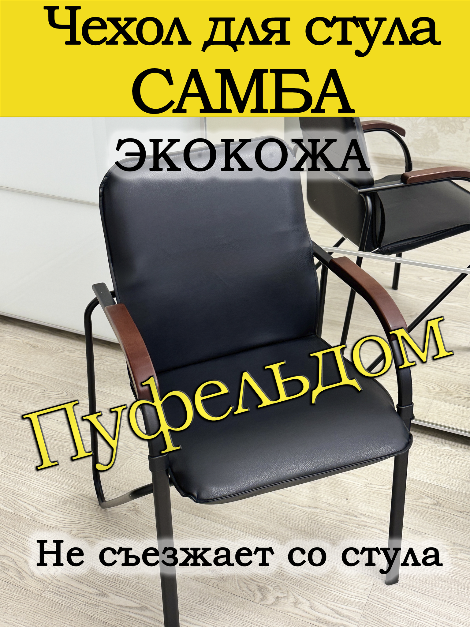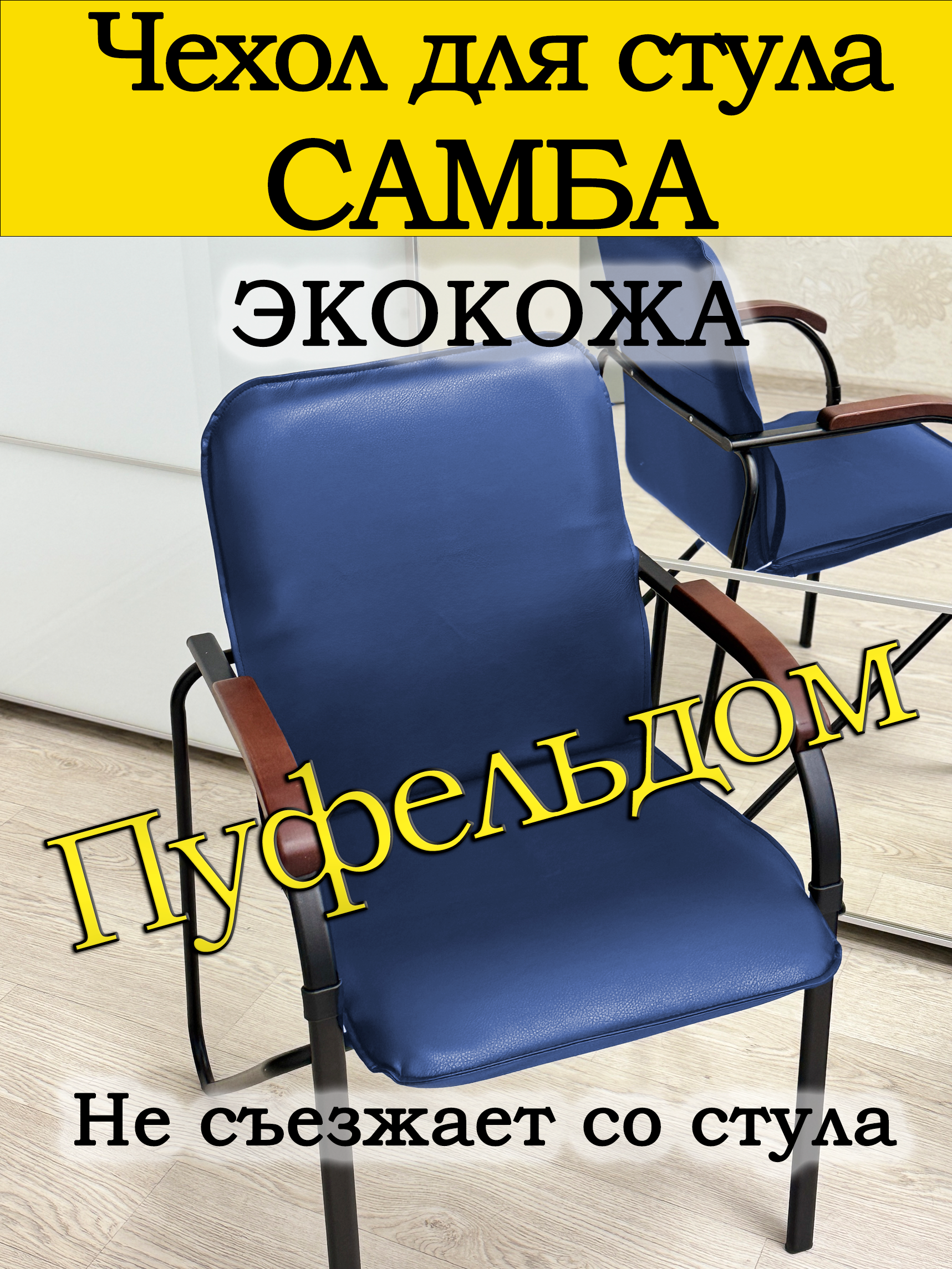 Чехол для стула Самба, который не съезжает. Может быть изготовлен из антивандального велюра и износостойкой экокожи. Ширина 45 см, высота спинки 46 см, глубина сиденья 44 см. Указанные размеры от шва до шва.