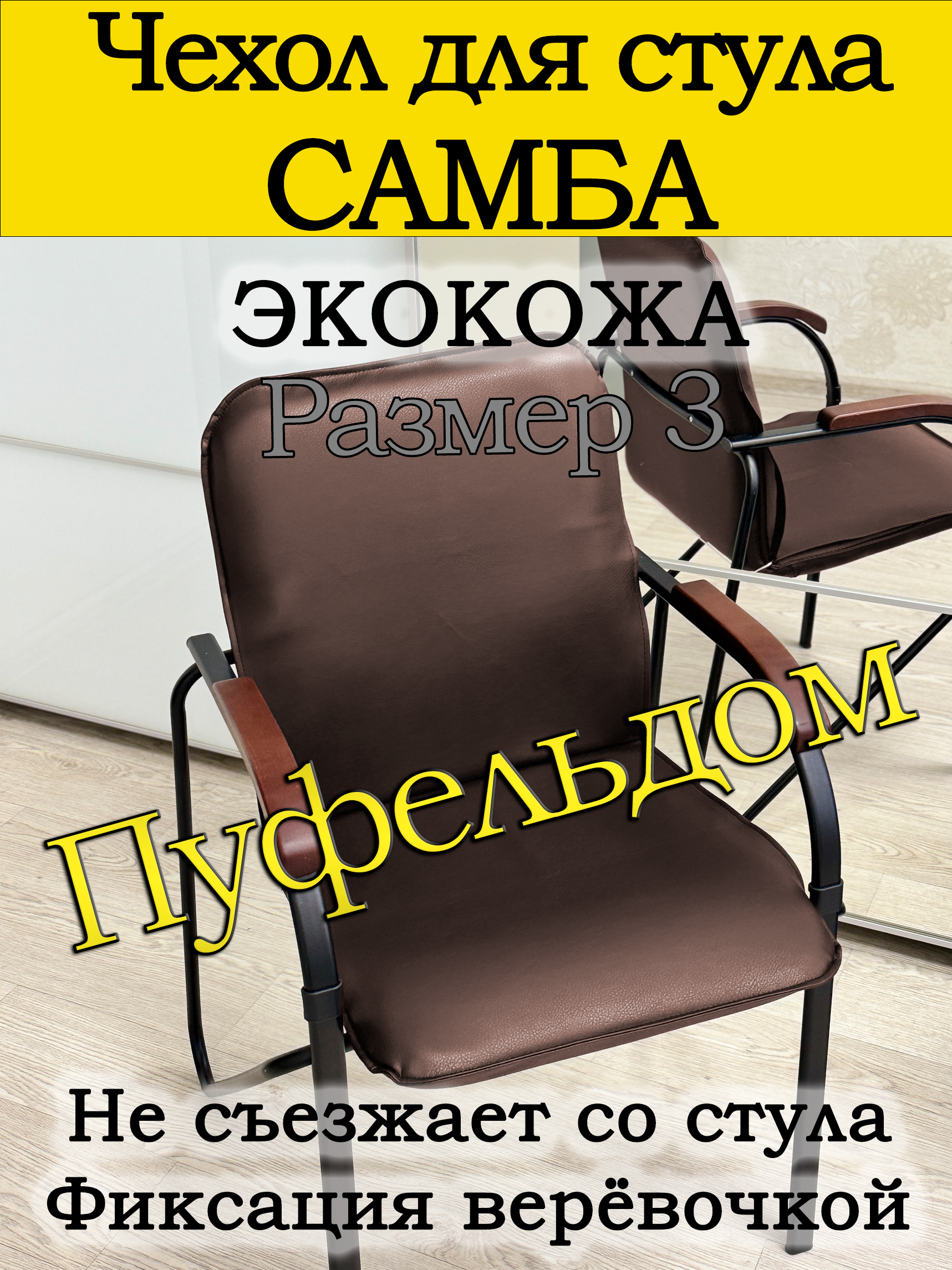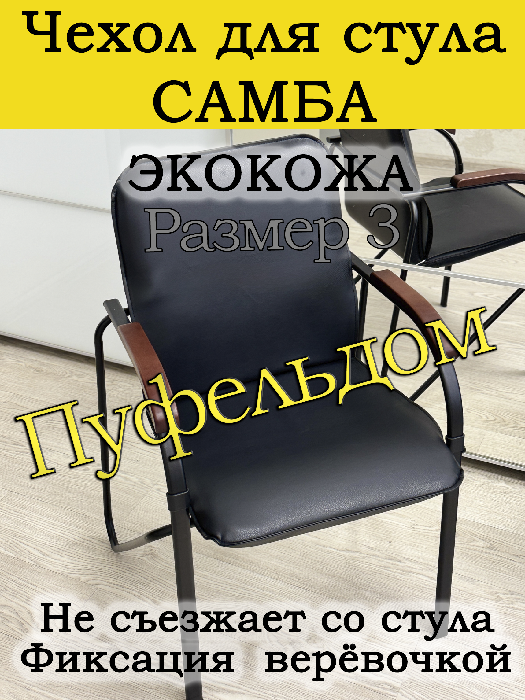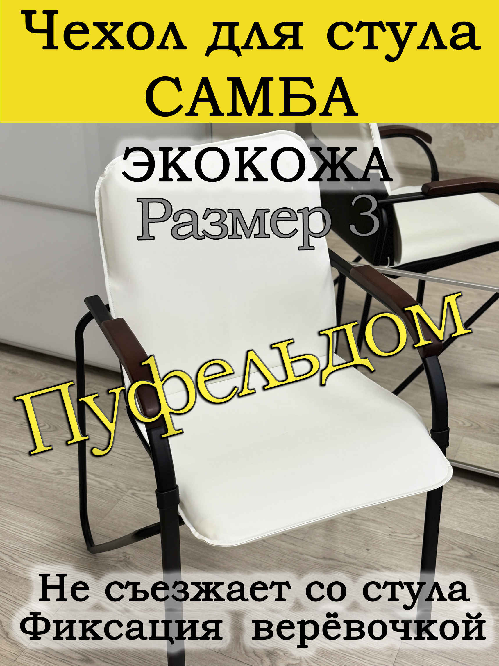 Чехол для стула Самба, который не съезжает. Может быть изготовлен из антивандального велюра и износостойкой экокожи. Ширина 48 см, высота спинки 46 см, глубина сиденья 44 см. Указанные размеры от шва до шва.