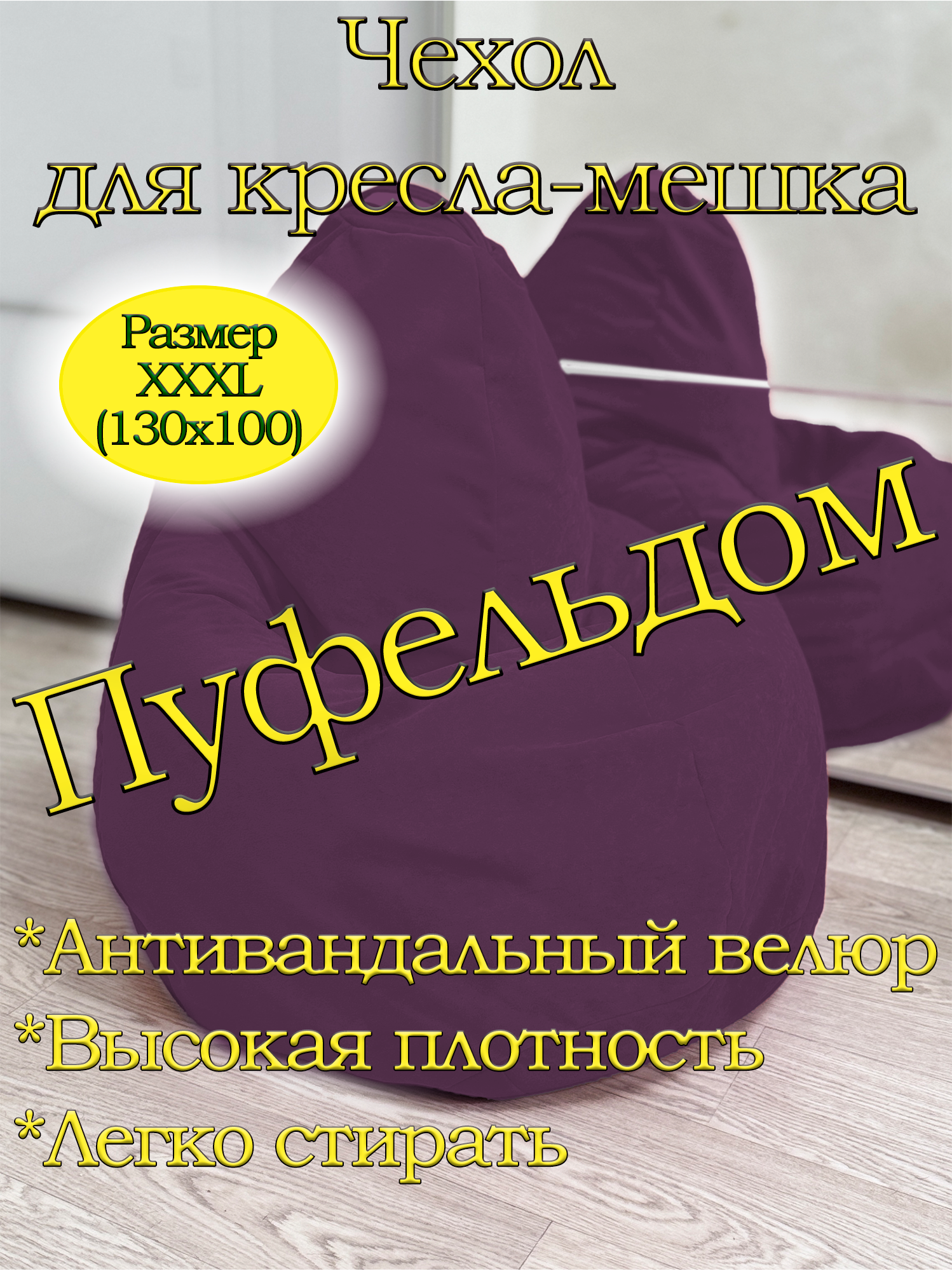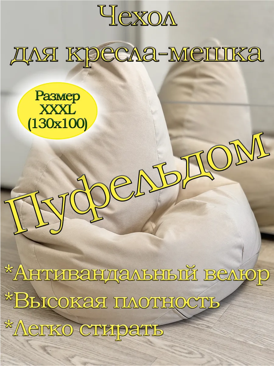 Чехол изготовлен из мебельного велюра высокой плотности и износостойкости, который не оставит Вас равнодушным! Он приятен на ощупь, легко стирается, противостоит когтям домашних животных! Изделие имеет ручку для переноса кресла. Детали имеют усиленные швы. Размерный ряд: XL - для кресла-мешка размером 110х70 см XXL - для кресла-мешка размером 120х85 см ХХXL - для кресла-мешка размером 130х100 см ХХXL - для кресла-мешка размером 140х120 см Реальный оттенок может отличаться от фото из-за особенностей настроек Вашего экрана.